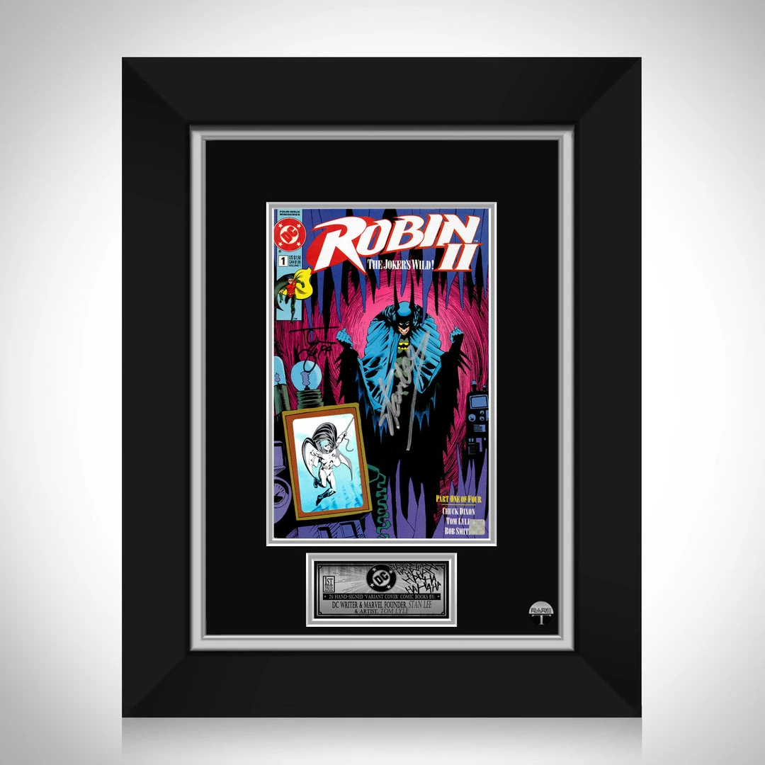 Pay homage to your favorite DC Superheroes with this gallery-framed, Hand-Signed, Robin II ‘The Joker’s Wild’ Comic Book signed by Artist Tom Lyle and Marvel Co-Founder & Executive Producer of all Marvel Movies, the late, great Stan Lee.