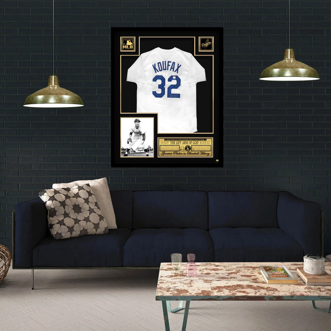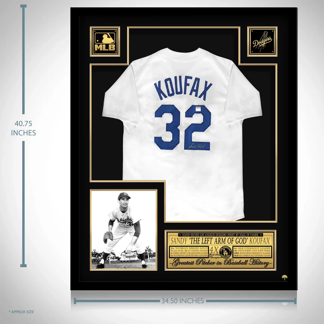 Pay homage to one of the greatest pitchers in baseball history, Sandy Koufax, with this gallery-framed, Hand-Signed, LA Dodgers #32 white jersey, that has been signed by the Hall of Fame baseball legend, Sandy Koufax.