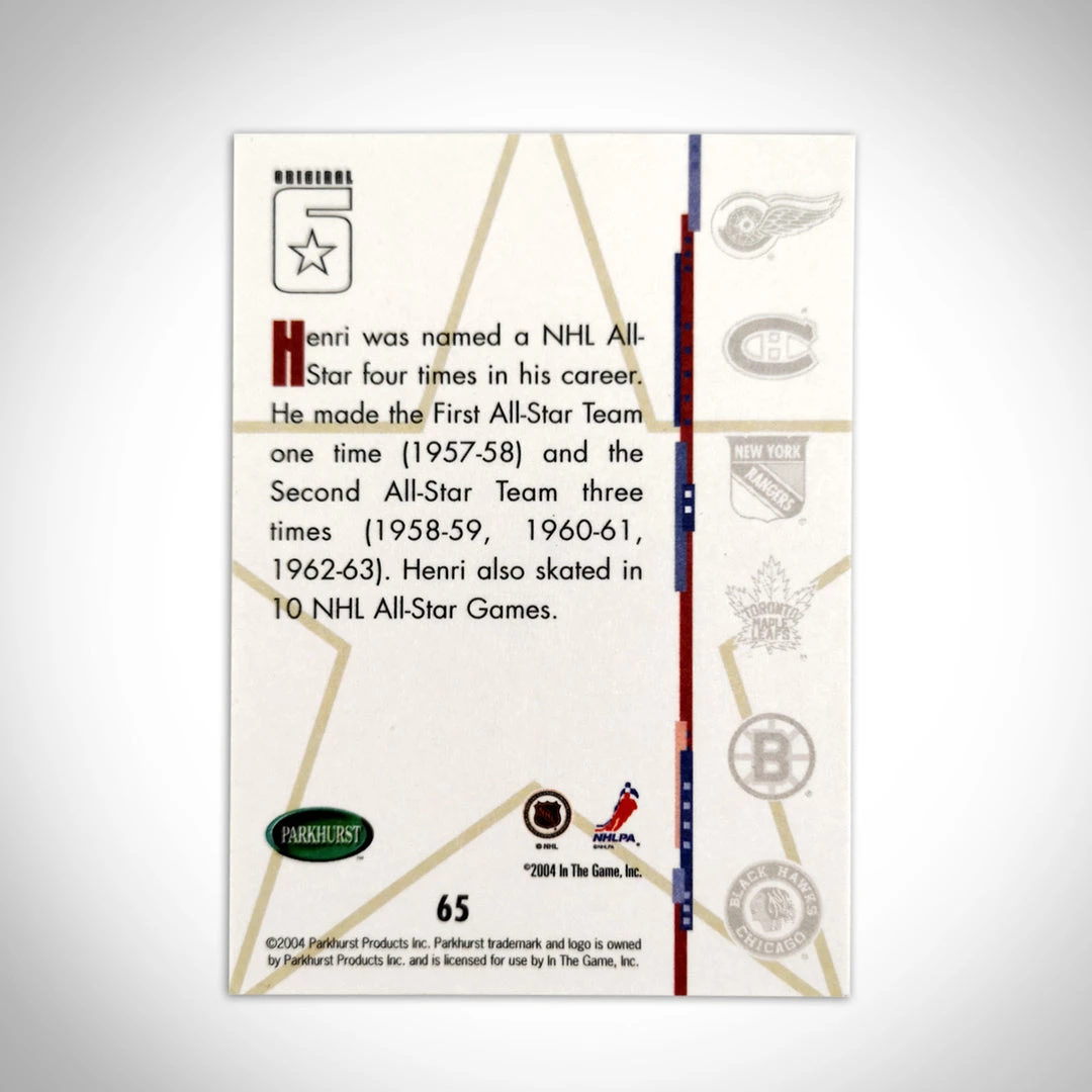Pay homage to one of the greatest NHL players in history, Henri ‘The Pocket Rocket’ Richard, with this Hand-Signed Vintage 2004 NHL Hockey Card.