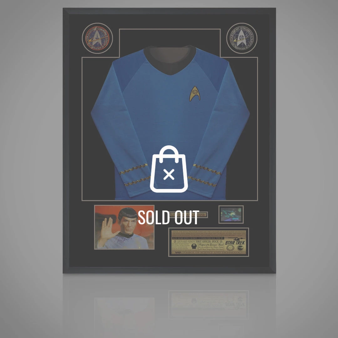 Impress everyone (including yourself!) with this RARE-T Exclusive ‘STAR TREK SWEATER Hand Signed by LEONARD NIMOY’ custom frame.