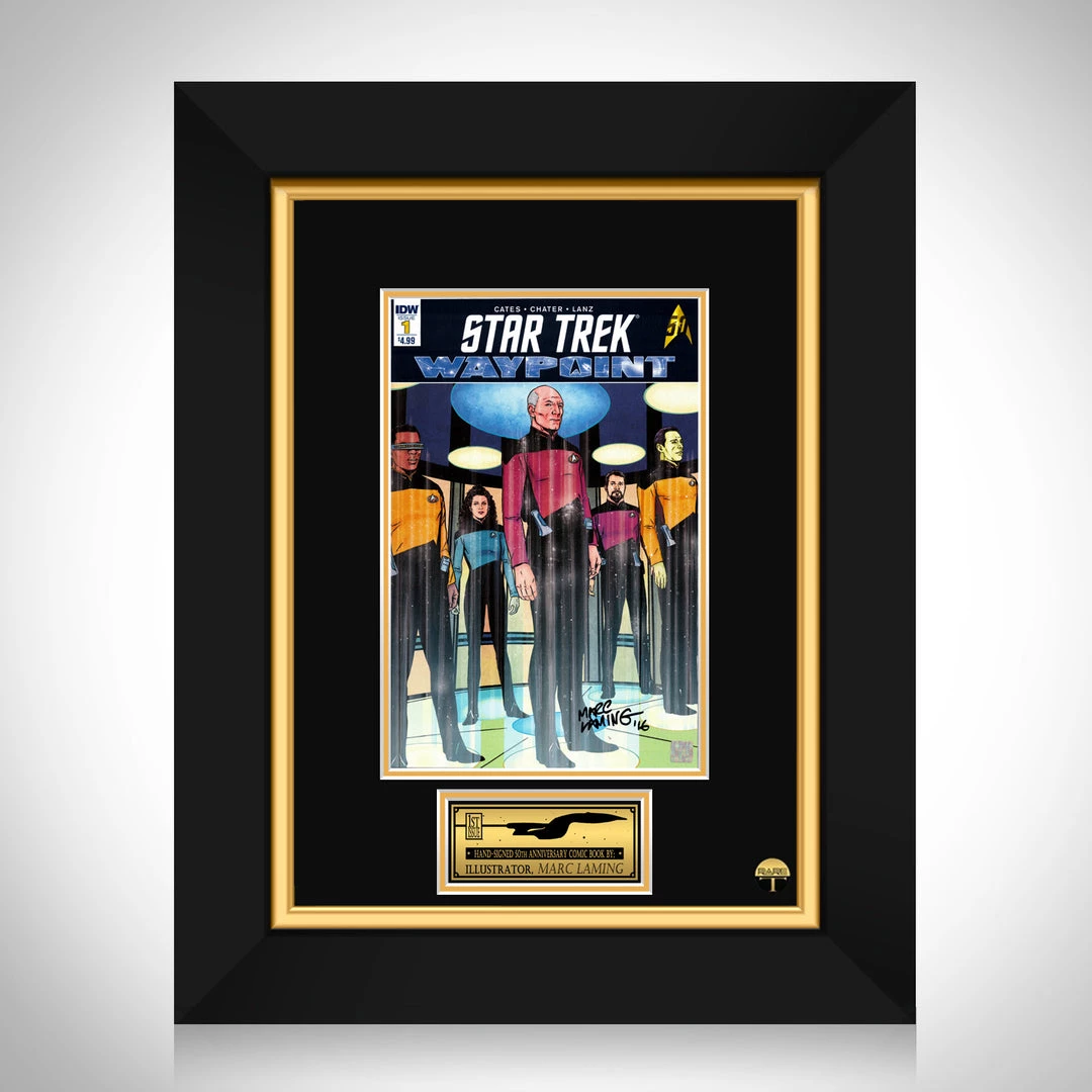 Pay homage to one of the most iconic franchises of all time, Star Trek, with this gallery-framed, Hand-Signed Limited Edition First Print Star Trek Waypoint #1 Comic Book celebrating the 50th anniversary of Star Trek Next Generation, that has been signed by artist Mark Laming.