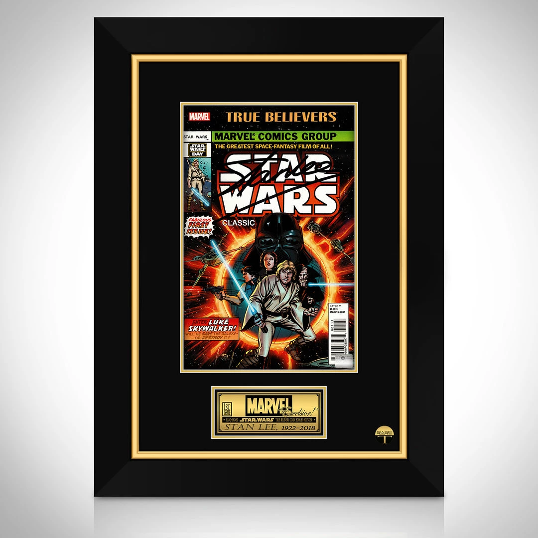 Pay homage to the legendary Saga, Star Wars, with this gallery framed, Hand-Signed Star Wars Classic #1 Comic Book, signed by Marvel Co-Founder Stan Lee, the creator of many Marvel characters as well as the Executive producer of all Marvel Movies.