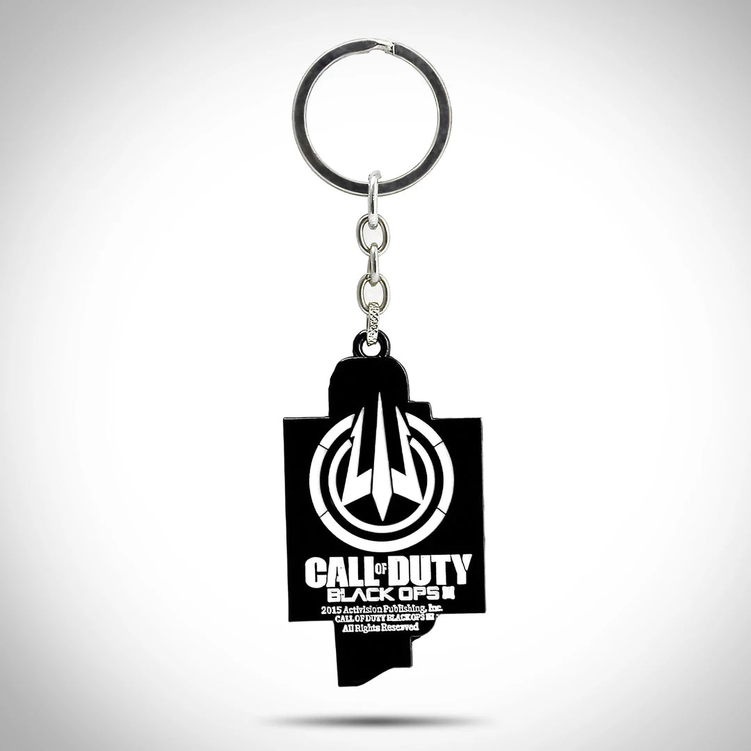Pay homage to one of the most exclaimed video game franchises Call of Duty and itβs iconic series COD Black Ops III Logo Keychain – You too can have a bit of COD Black Ops with you at all times with this double sided cast metal game logo. This amazing keychain has a chrome finish with engraved durable enamel, made with high density metal, making it tough and durable.