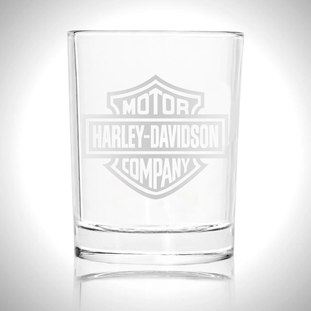 This 3.5-inch tall, handmade in the good’ol U.S of A, rock glass is a beautiful piece of artisanal glass, that’s etched with the iconic HARLEY-DAVIDSON logo. Each glass is its own work of art, and therefore unique – no two glasses are identical.