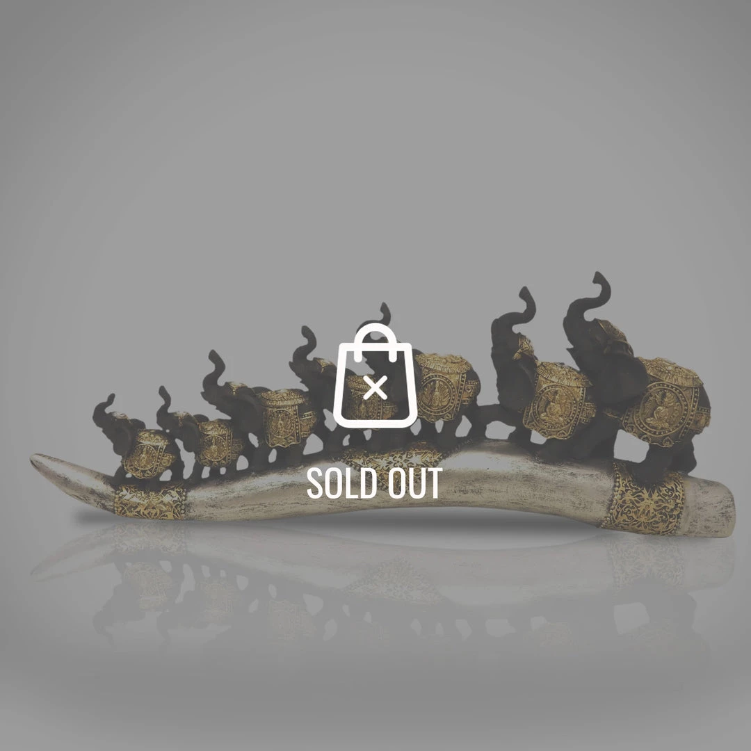 Decorate your room, business, home or office with this Handmade and painted ‘Elephant Tusk’ resin statue. This piece of folk art at its best is elegantly weathered and adorned with mirrored jewels and has a great antique gold and silver patina, just the way we like’em! The used-and-abused vintage finish makes it the perfect addition to your unique decor. It’s a must for any man-cave, bar, garage, game room, lady den, – or just as a cool conversation piece in your home or office.
