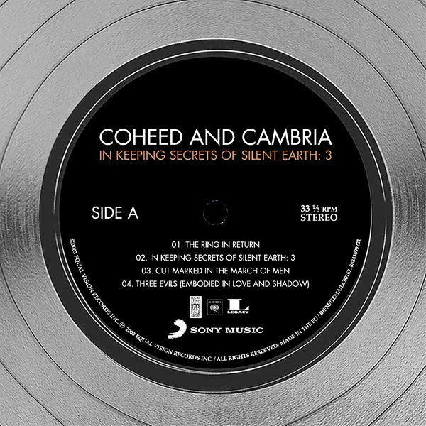 Pay homage to one of the most iconic American progressive rock band of all time Coheed and Cambria , with this gallery-framed, authentic Equal Vision Records fully licensed facsimile of the official Hand-Signed Platinum Plated LP Record and LP Cover In keeping secrets of silent earth 3 Originally signed by Claudio Sanchez, Travis Stever & Michael Todd , of which is strictly limited to 100 units Worldwide and has been approved and numbered accordingly.