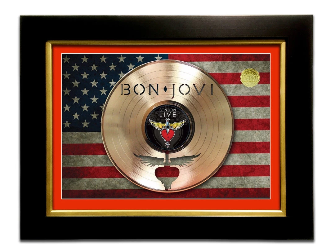 Impress everyone – especially yourself – with this Limited Edition GOLD LP ‘BON JOVI – LIVE’ Custom Frame.