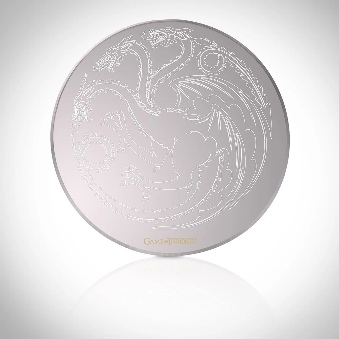 The golden white Targaryen doesn’t style itself. This circular mirror features the three-headed Targaryen dragon from the acclaimed HBO show Game of Thrones. Officially licensed product.