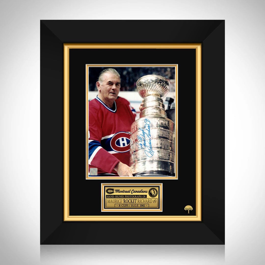 Pay homage to the “Rocket” with this gallery-framed, Hand-Signed photo of the hockey legend Maurice Richard with the Stanley Cup, signed by the hockey legend himself, the late, great Maurice ‘The Rocket’ Richard.