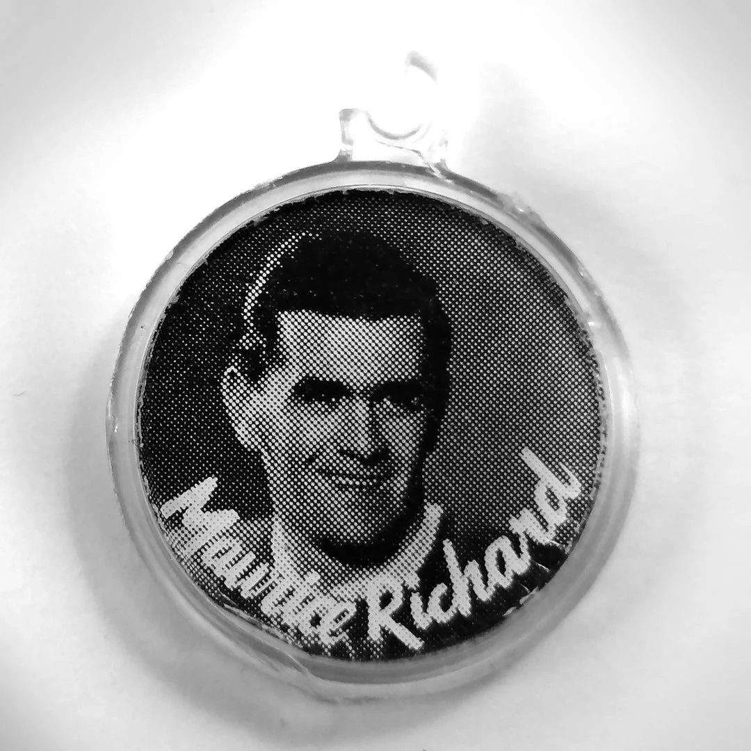 Pay homage to late, great Hockey Legends, Maurice “Rocket” Richard and Sid Smith with this double sided Vintage 1950’s Charm Pendant featuring photos of Maurice Richard and Sid Smith.
