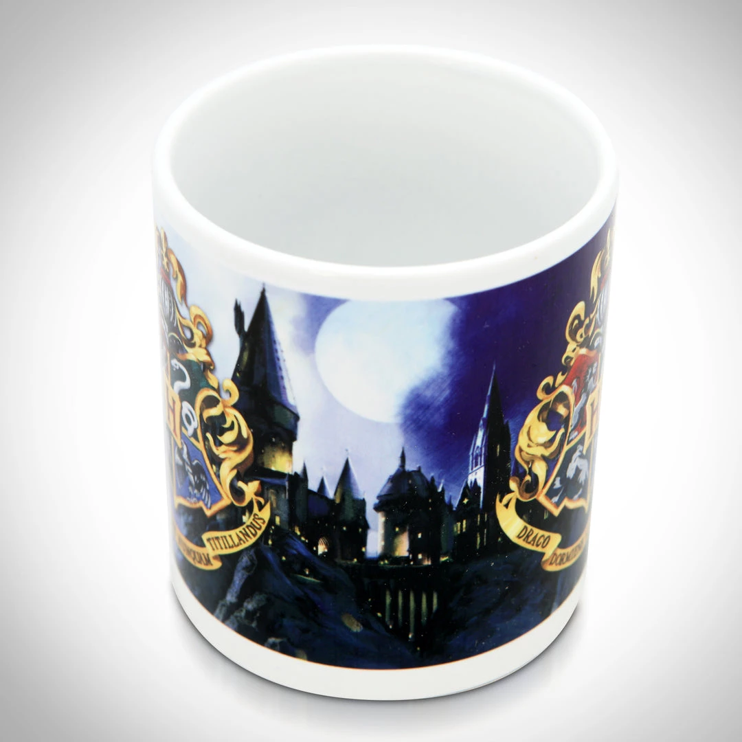 Drop the sugar and sprinkle a little magic into your coffee with this Warner Bros. Officially licensed, Potter-tastic mug representing the Hogwarts crests are highlighted into each strip. The smooth white ceramic and easy-grip handle feels great in your hand as you sip your morning brew or afternoon tea. Use it at home or in the office as a pen holder, or on display for all to see. The design is professionally printed.