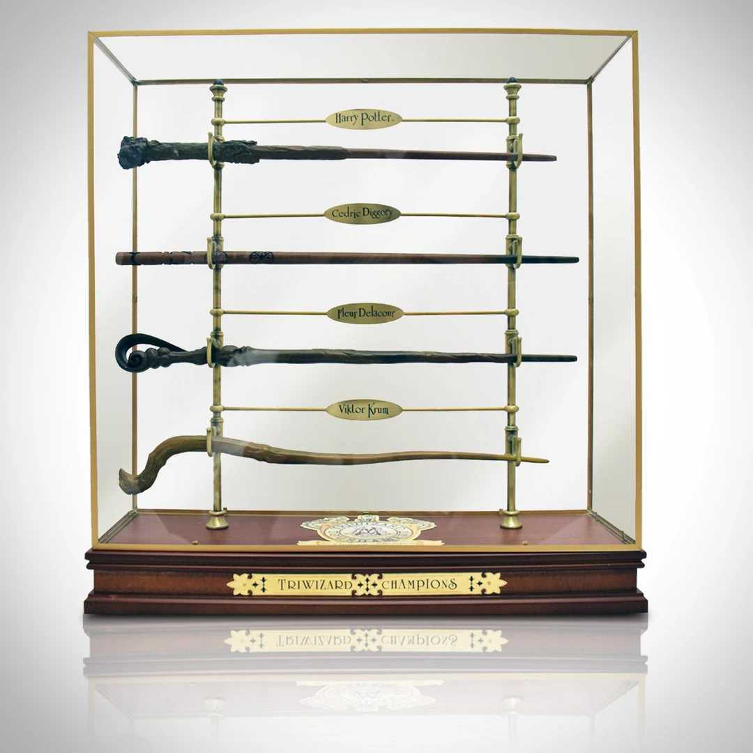This 17 inch high display showcases 4 replica wands of Harry Potter, Cedric Diggory, Fleur Delacour and Victor Krum