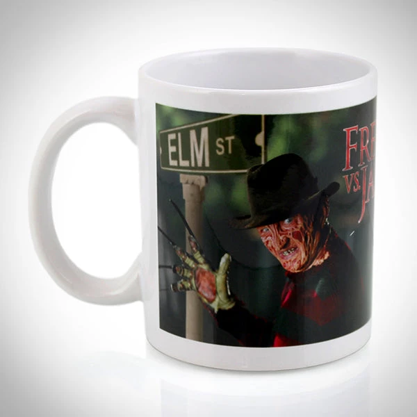 Scream for your cream as you reach for your morning coffee with this officially licensed, Freddy vs. Jason 20oz XL mug, featuring a double build of horror. One side you have Jason Voorhees with the Friday the 13th design, while on the other side you have Freddy Kruger with Nightmare on Elm Street. Made of high density ceramic with an an allover design, and easy-grip handle – this mug will feel great in your hands. Use it at home or in the office as a pen holder, or on display for all to see.