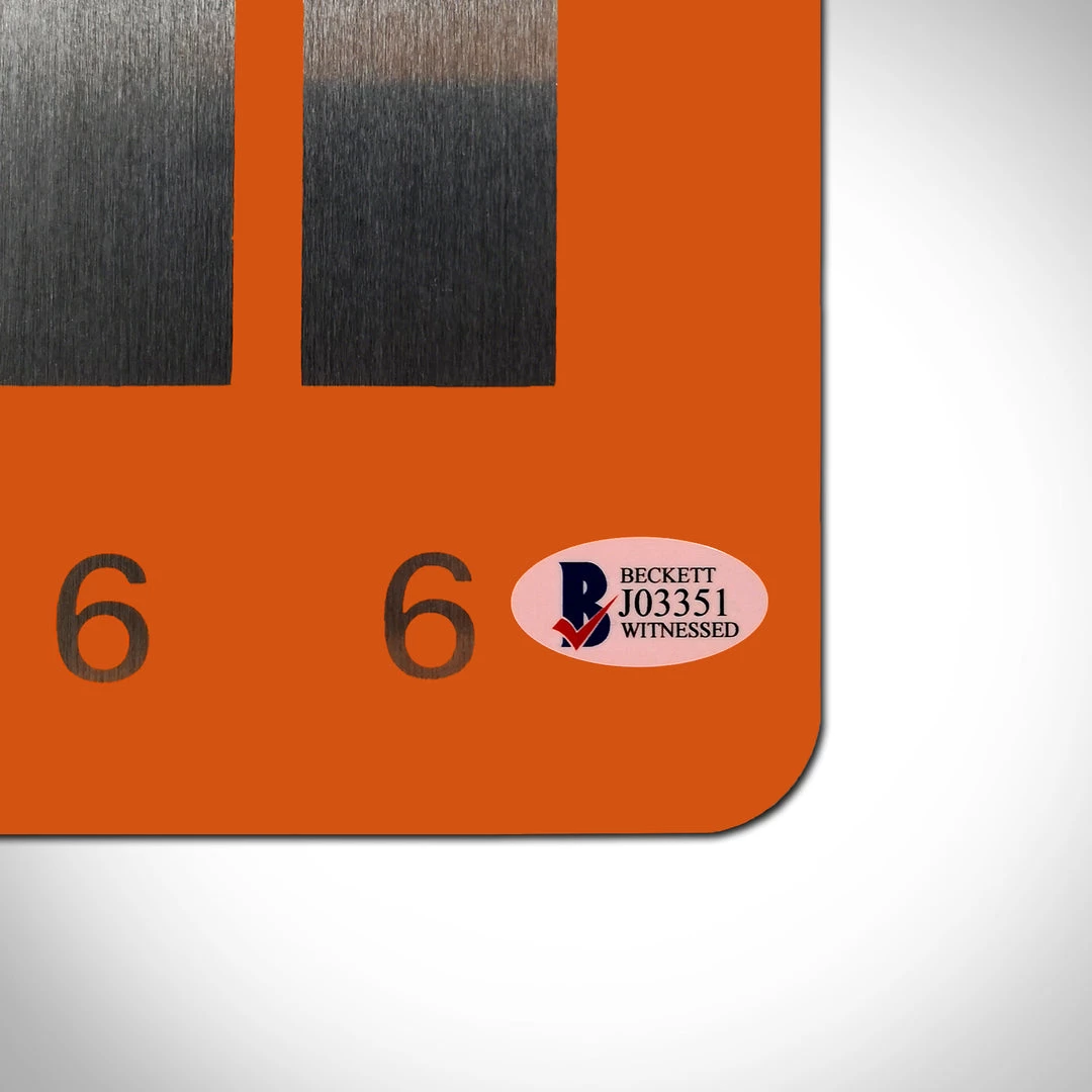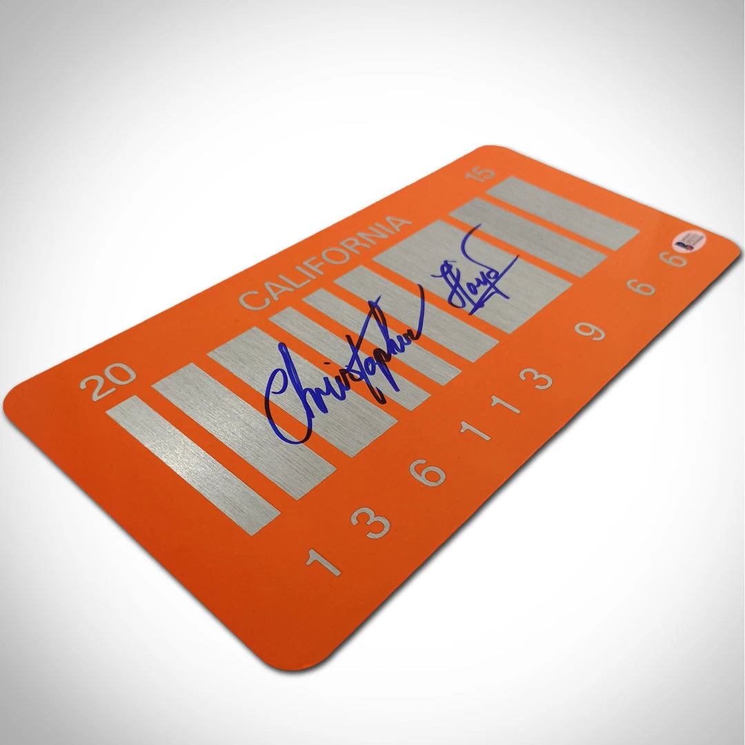 Certified by one of the most reputable autograph authentication companies in the industry. The signing of this license plate was personally witnessed by a representative of Beckett Authentication Services, guaranteeing the 100% authenticity of Christopher Lloyd’s signature.