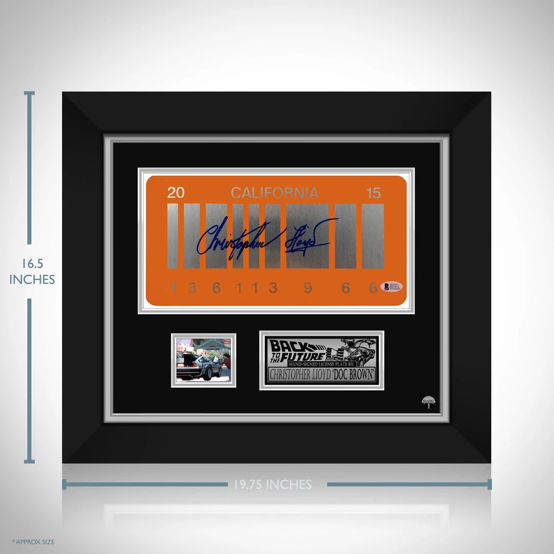 Pay homage to Marty McFly and Doc Brown and one of the most iconic movies of all time, Back to the Future, with this gallery-framed, Hand-Signed, 2015 California License Plate prop signed by legendary actor Christopher Lloyd himself and witnessed by Beckett Authentication Services.