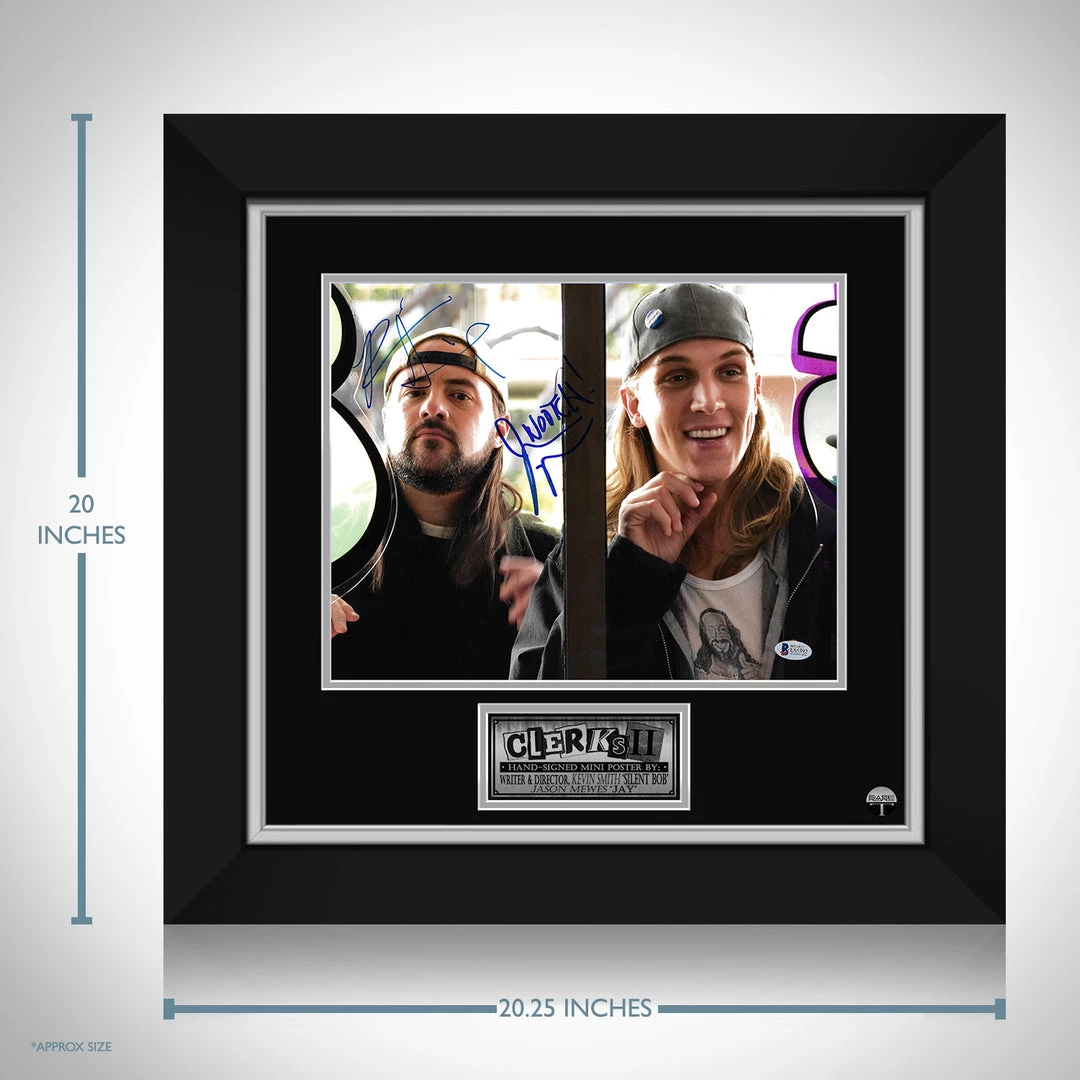 Pay homage to Clerks 2 with this gallery-framed, Beckett Authenticated, Hand-Signed photo, signed by actors Jason Mewes & Kevin Smith.