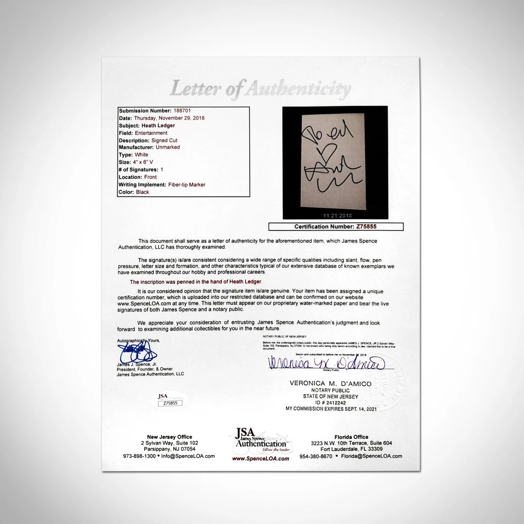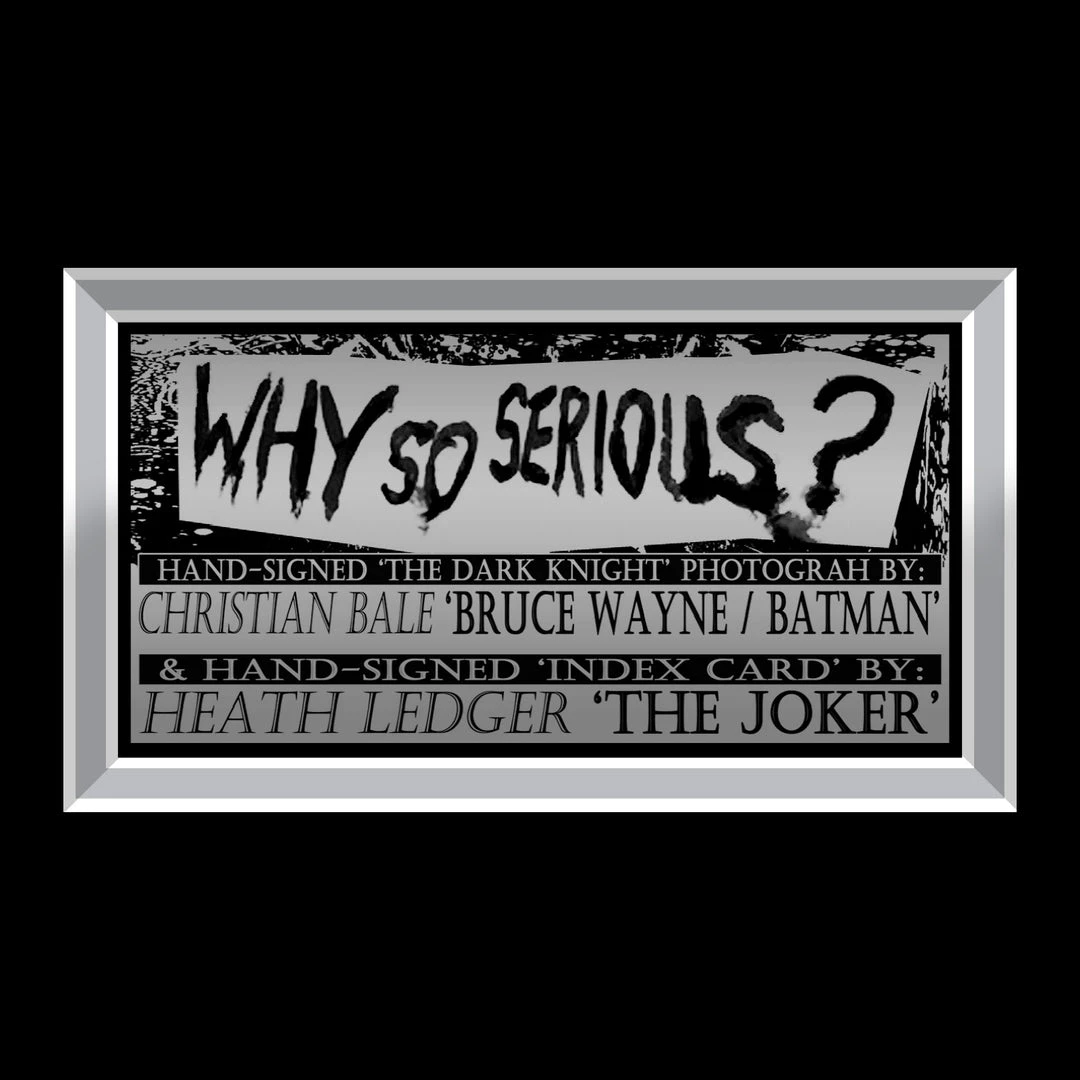 Pay homage to one of the most iconic movies of all time from the Batman franchise ‘The Dark Knight’ and two of the legendary actors that made the Dark Knight so epic, Christian Bale and Heath Ledger with this absolute masterpiece, a gallery-framed, Hand-Signed photo by Christian Bale and a Hand-Signed Index Card by the late, great Heath Ledger, both have been certified by two of the most reputable autograph authentication companies in the industry JSA and Beckett.