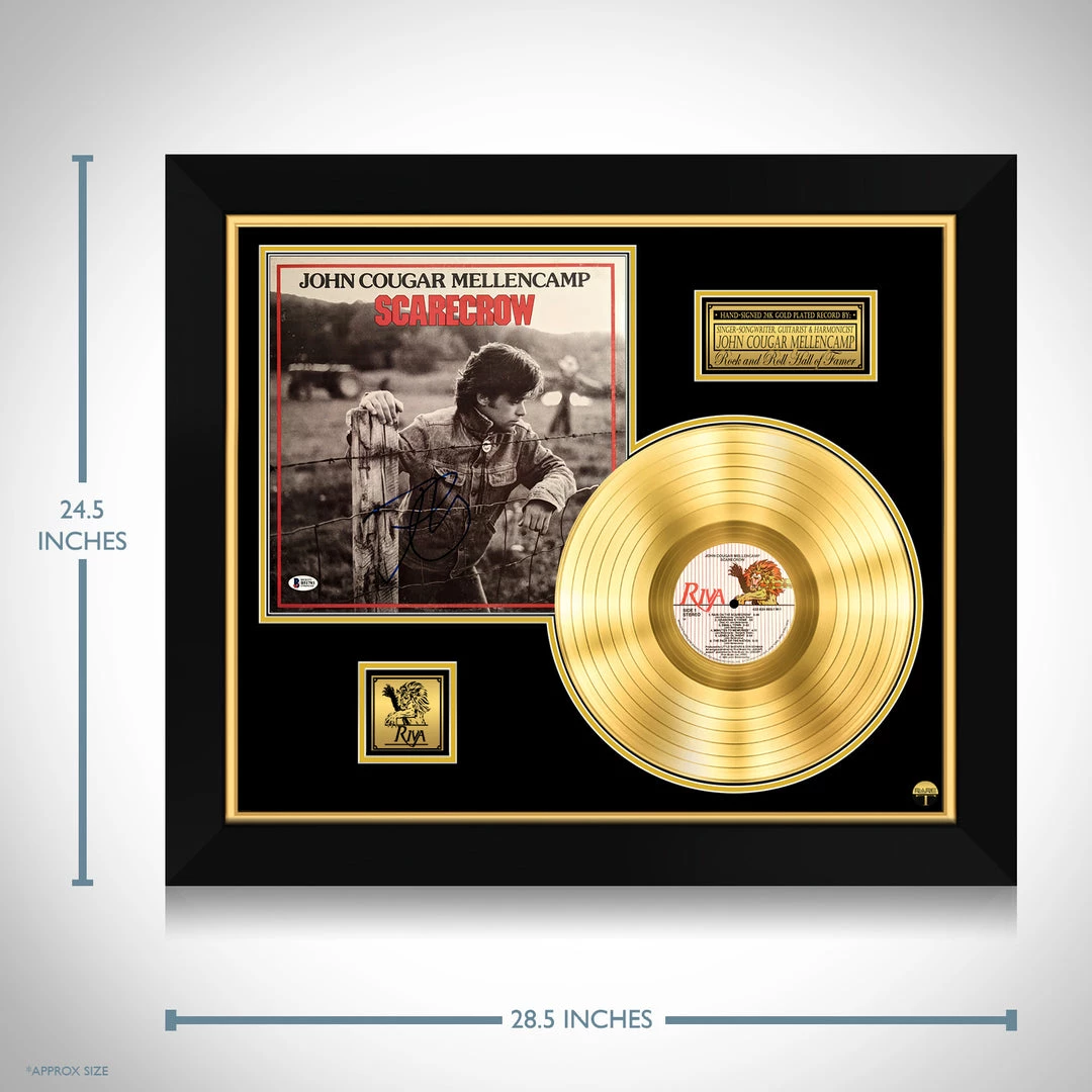 Pay homage to one of the most iconic and influential musician of all time, John Mellencamp, with this gallery-framed, Beckett Authenticated, Hand-Signed Scarecrow  Gold Plated LP Record and LP Cover, signed by John Mellencamp