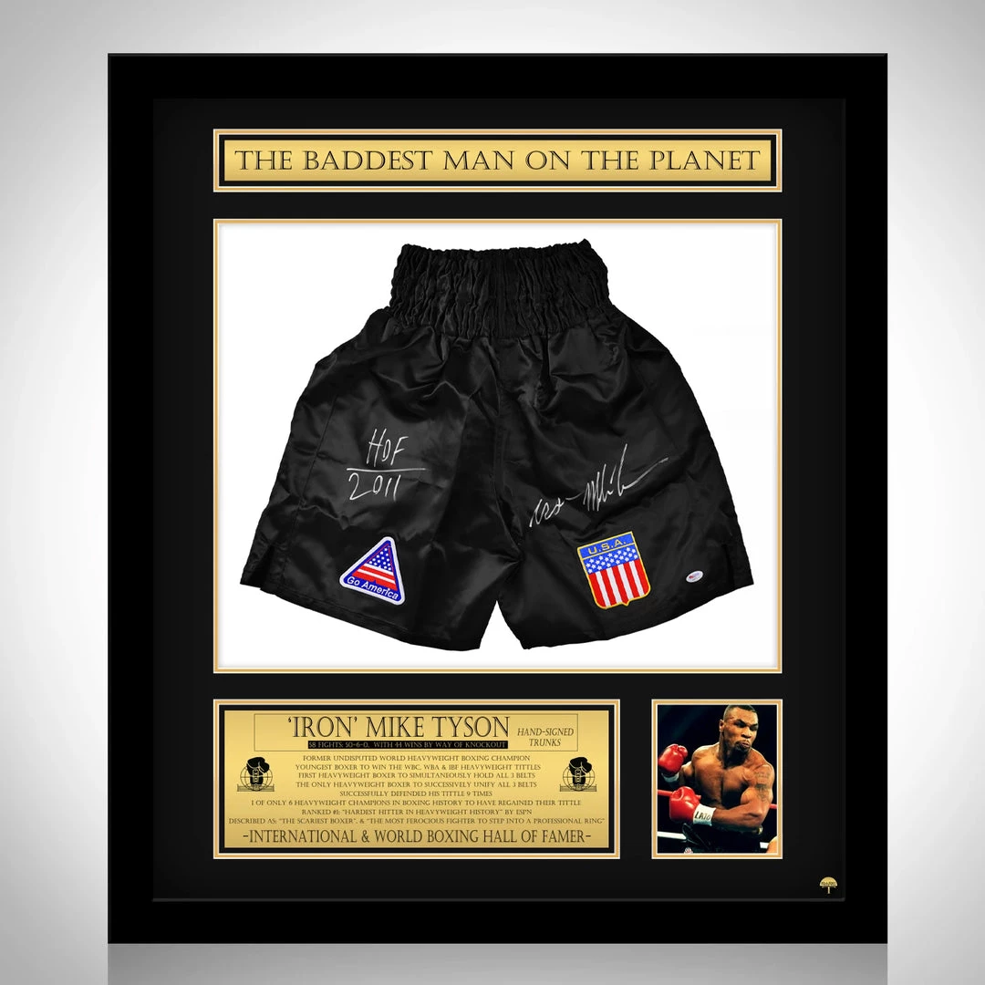 Pay homage to “The Baddest Man on the Planet“, Mike Tyson with this gallery-framed, Hand-Signed PSA/DNA Certified boxing trunks, that have been signed and inscribed by Hall Of Fame boxing legend ‘Iron’ Mike Tyson himself.