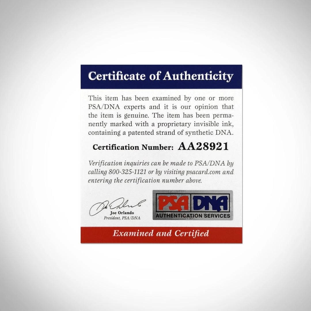 Certified by one of the most reputable autograph authentication companies in the industry. The signature on this boot has been authenticated by a representative of PSA/DNA Authentication Services and has been permanently marked with a proprietary invisible ink, containing a patented strand of synthetic DNA.