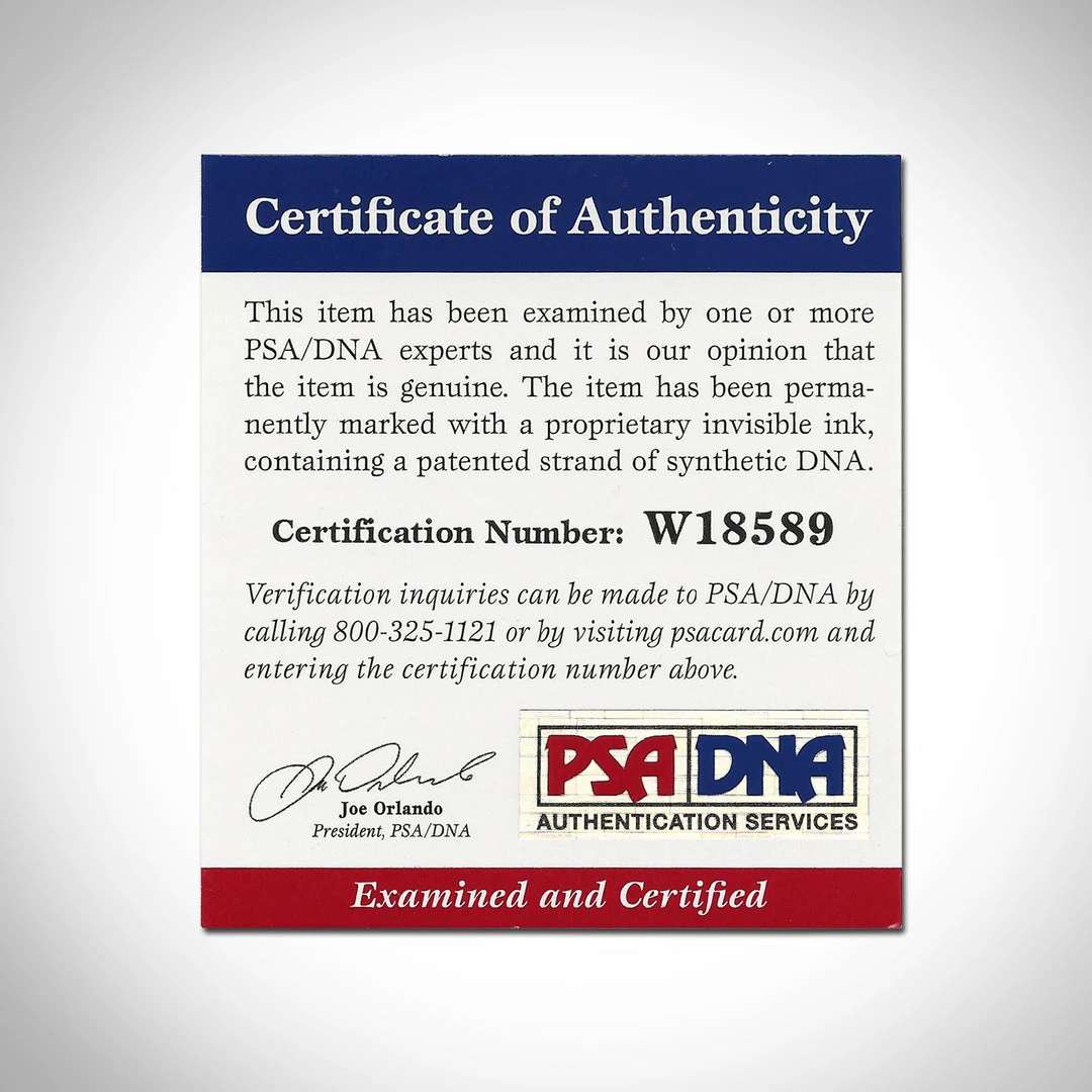 Certified by one of the most reputable autograph authentication companies in the industry. The signature on this canvas has been authenticated by a representative of PSA/DNA Authentication Services and has been permanently marked with a proprietary invisible ink, containing a patented strand of synthetic DNA.