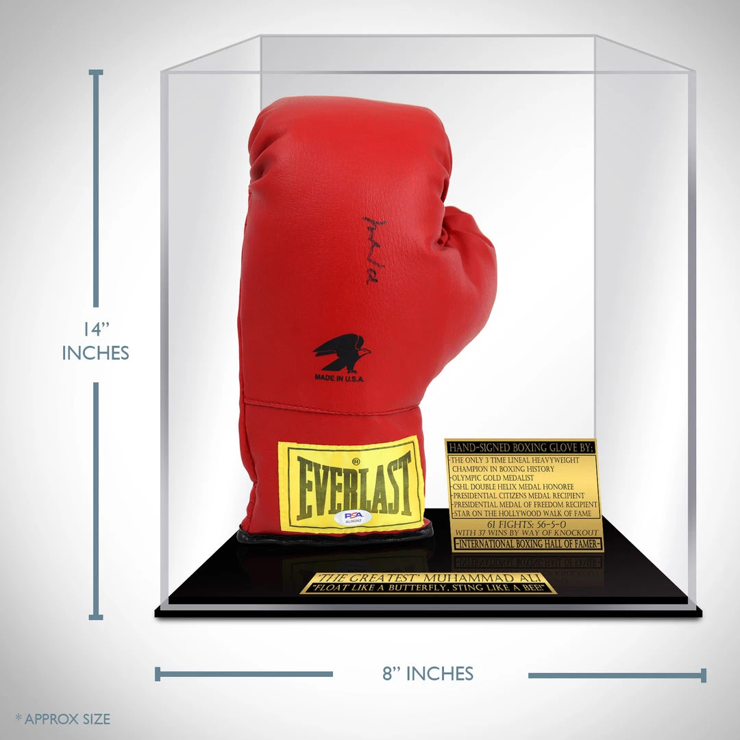 Pay homage to one of the most iconic and influential athletes of all time, Muhammad Ali with this ABSOLUTE MASTERPIECE! A museum displayed, PSA/DNA Authenticated, Muhammad Ali Hand-Signed Everlast boxing glove which has been signed by the legendary, Muhammad Ali.