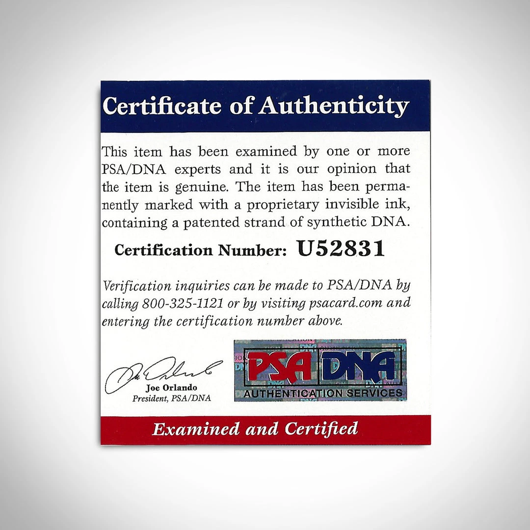 Certified by one of the most reputable autograph authentication companies in the industry. The signature on this photo has been authenticated by a representative of PSA/DNA Authentication Services and has been permanently marked with a proprietary invisible ink, containing a patented strand of synthetic DNA.