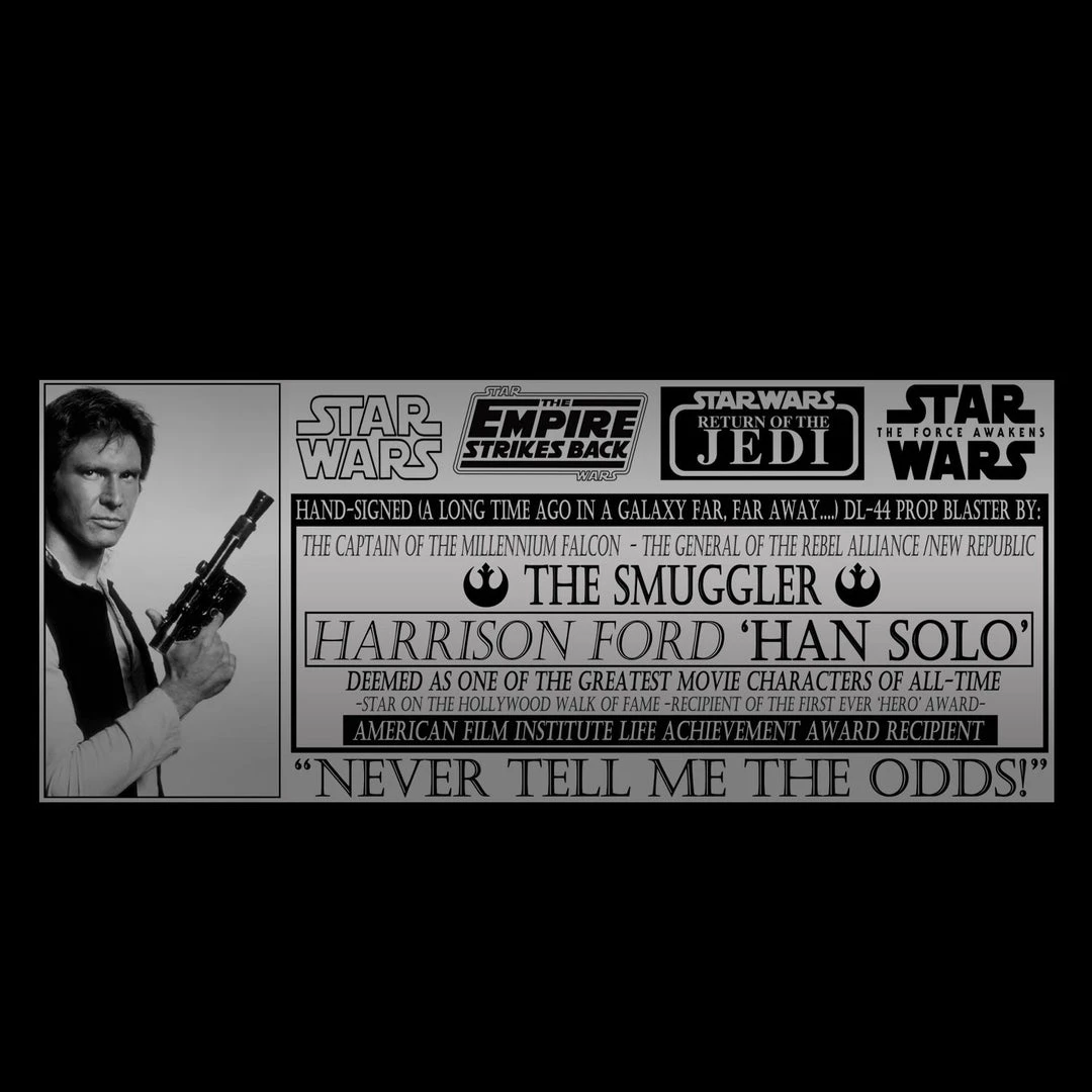 Pay homage to one of the most iconic franchises of all time STAR WARS with this ABSOLUTE MASTERPIECE! A museum displayed, Beckett ‘WITNESSED’ Authenticated, Han Solo Hand-Signed DL-44 prop Blaster which has been signed by the legendary Smuggler, Harrison Ford.