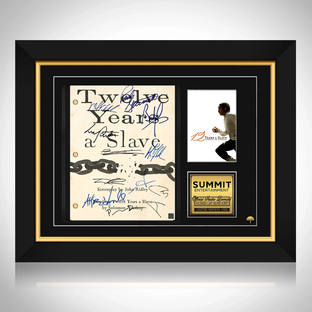 Pay homage to 12 Years of Slave , with this Summit Entertainment fully licensed facsimile of the official signed movie script, originally signed by actors Brad Pitt, Chiwetel Ejiofor, Michael Fassbender, Benedict Cumberbatch, Paul Dano, Paul Giamatti, Lupita Nyong’o, Sarah Paulson, Alfre Woodard, Michael Kenneth Williams & Taran Killam , of which is strictly limited to 100 units Worldwide and has been approved and numbered accordingly.