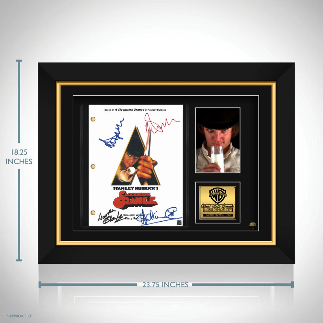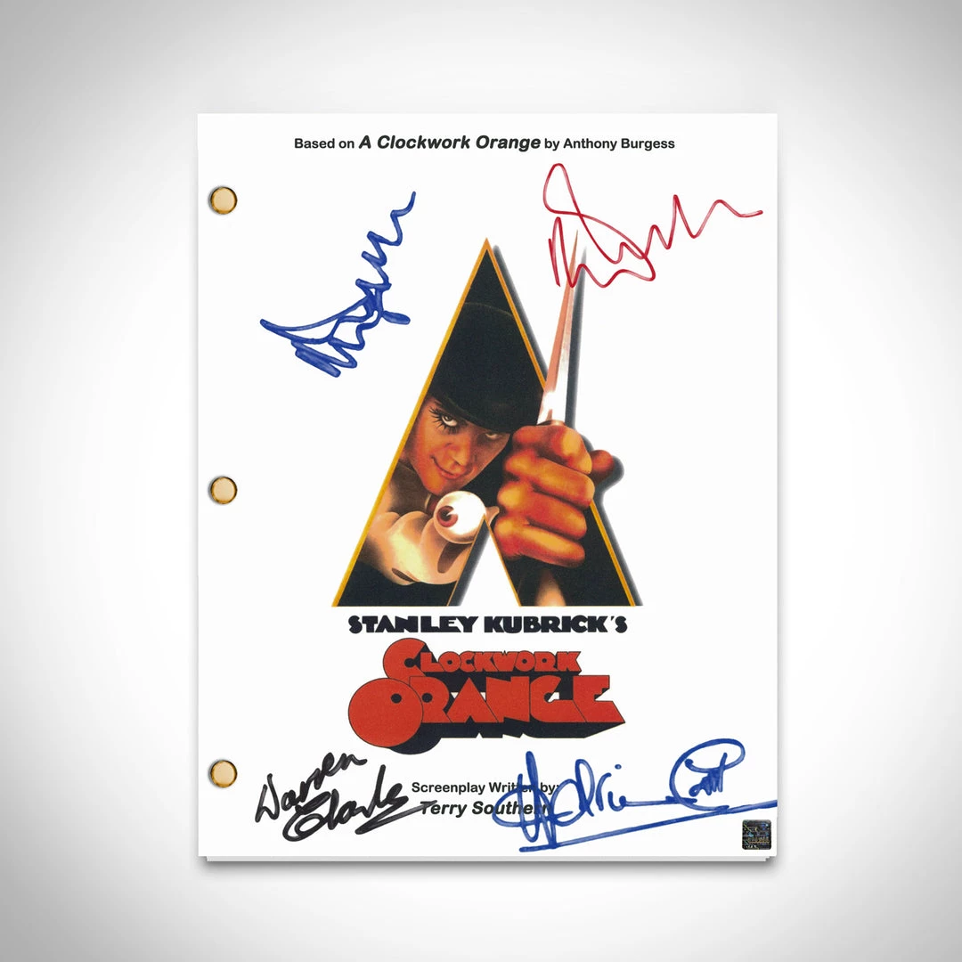 Pay homage to A Clockwork Orange , with this Warners Bros. Pictures  fully licensed facsimile of the official signed movie script, originally signed by actors Malcolm McDowell, Patrick Magee, Stanley Kubrick & Michael Bates , of which is strictly limited to 100 units Worldwide and has been approved and numbered accordingly.
