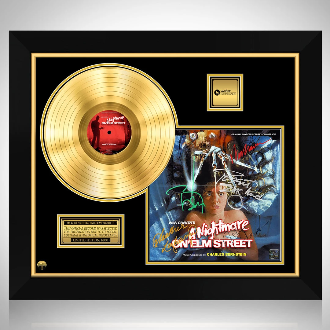 Pay homage to one of the most iconic movie of all time A Nightmare on Elm Street , with this gallery-framed, authentic Var??se Sarabande fully licensed facsimile of the official Hand-Signed 24K Gold LP Record and EP Cover soundtrack Originally signed by Heather Langenkamp, Johnny Depp, Robert Englund, Wes Craven & John Saxon , of which is strictly limited to 100 units Worldwide and has been approved and numbered accordingly.