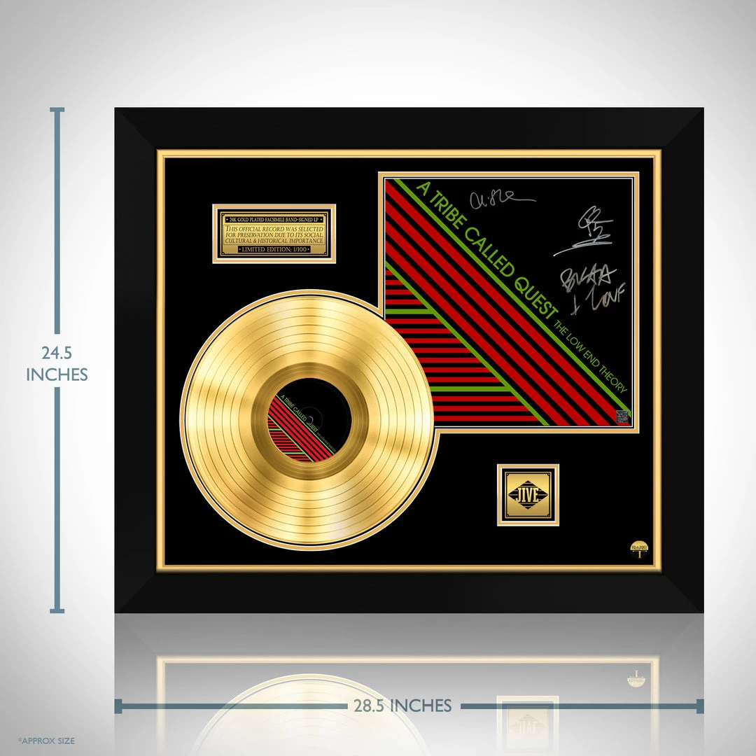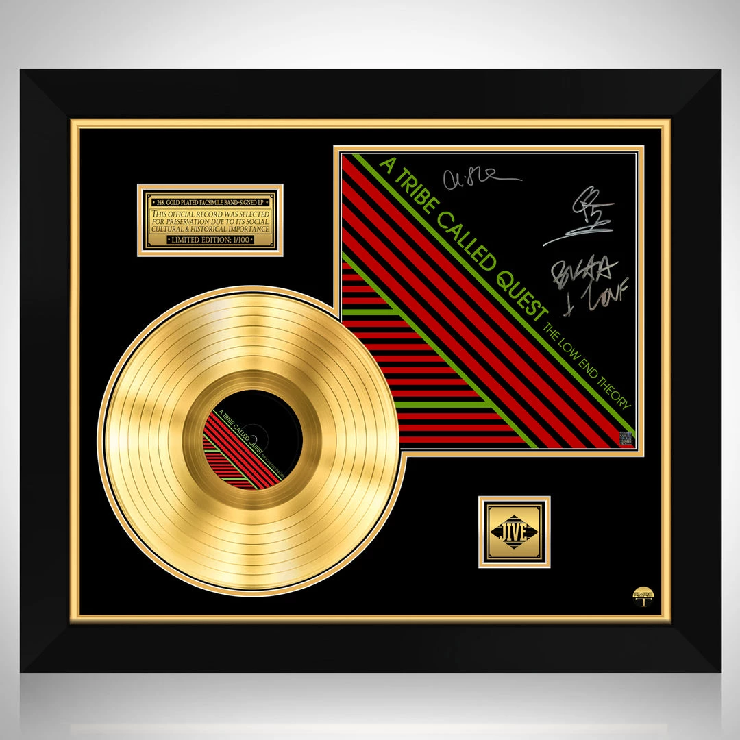Pay homage to one of the most iconic American hip hop group of all time A Tribe called Quest , with this gallery-framed, authentic Jive Records fully licensed facsimile of the official Hand-Signed 24K Gold LP Record and LP Cover The Low end Theory Originally signed by Q-Tip, Busta Rhymes & Ali Shaheed Muhammad , of which is strictly limited to 100 units Worldwide and has been approved and numbered accordingly.
