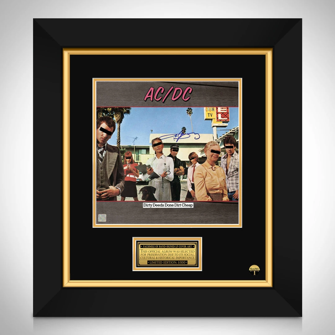 Pay homage to one of the greatest selling and most influential rock bands of all time, AC/DC, with this gallery-framed, officially licensed, limited edition facsimile of the Hand-Signed Dirty Deeds Done Dirt Cheap LP Cover originally signed by band member, singer-songwriter, guitarist, producer, Angus Young, of which is strictly limited to 100 units Worldwide, and has been approved and numbered accordingly.