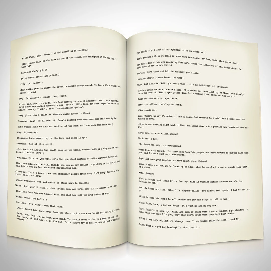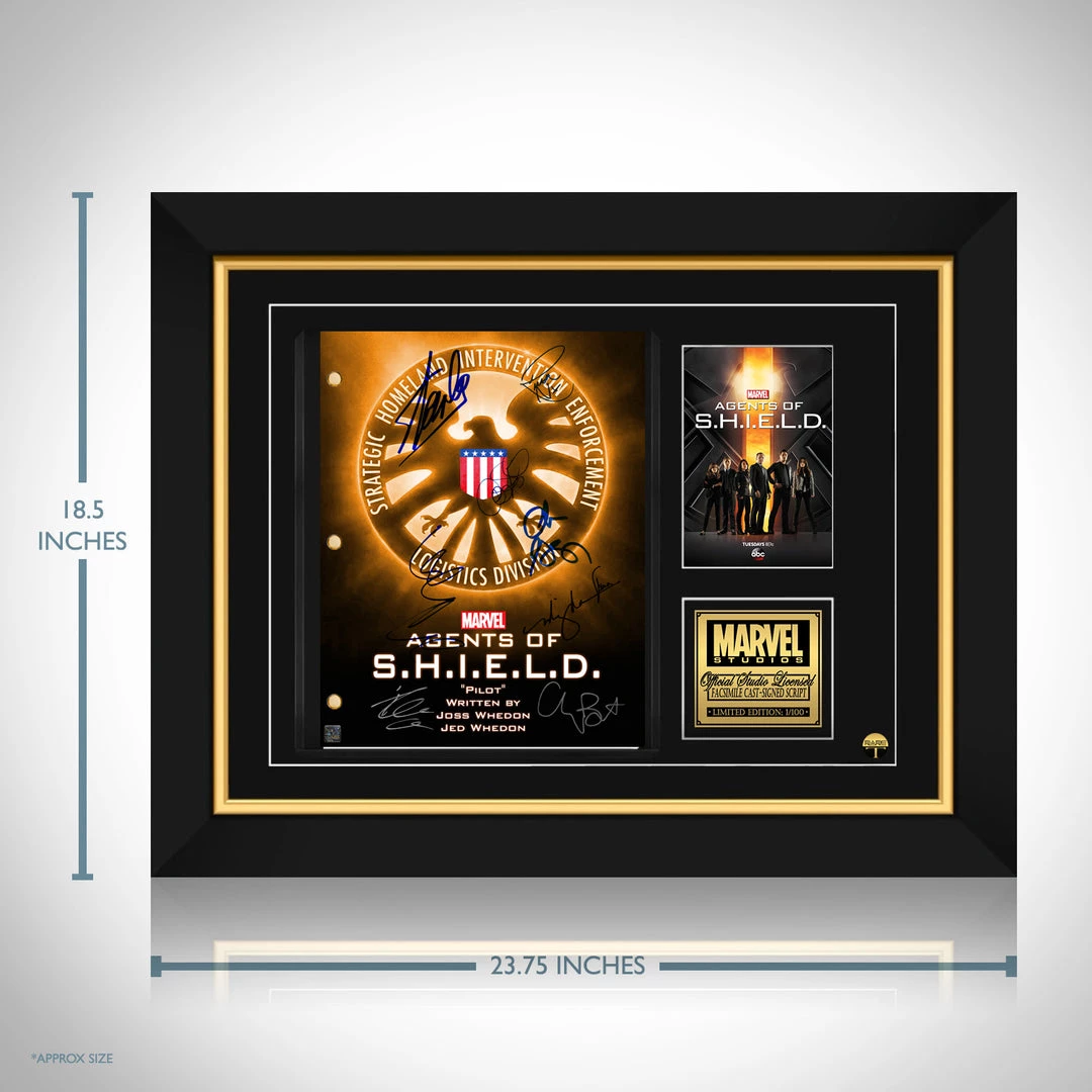 — Collector Grade Proprietary Exclusive VELVET TOUCH water/scratch resistant cover. — Collectible Facsimile of Original Hand-Signed Agents of S.H.I.E.L.D TV Series Script Custom Frame.