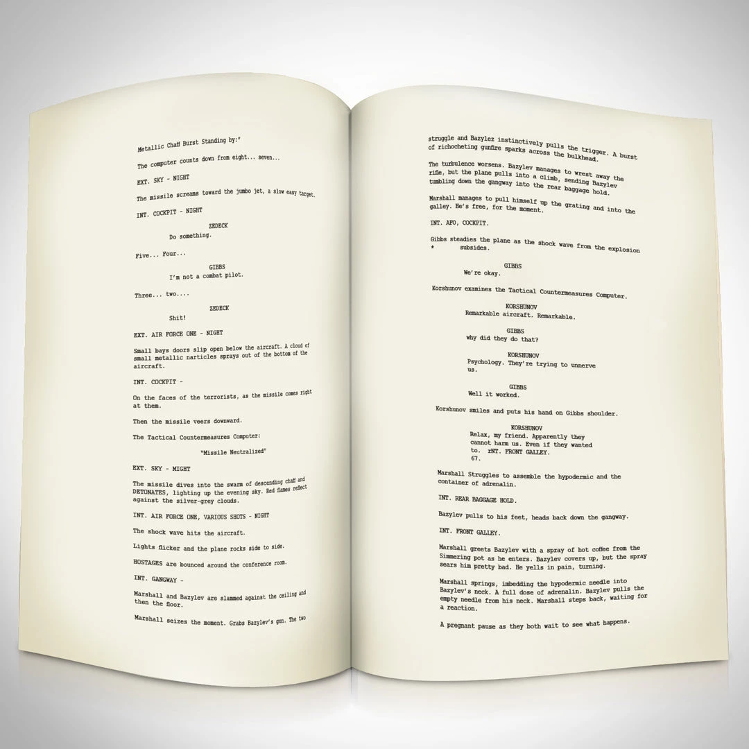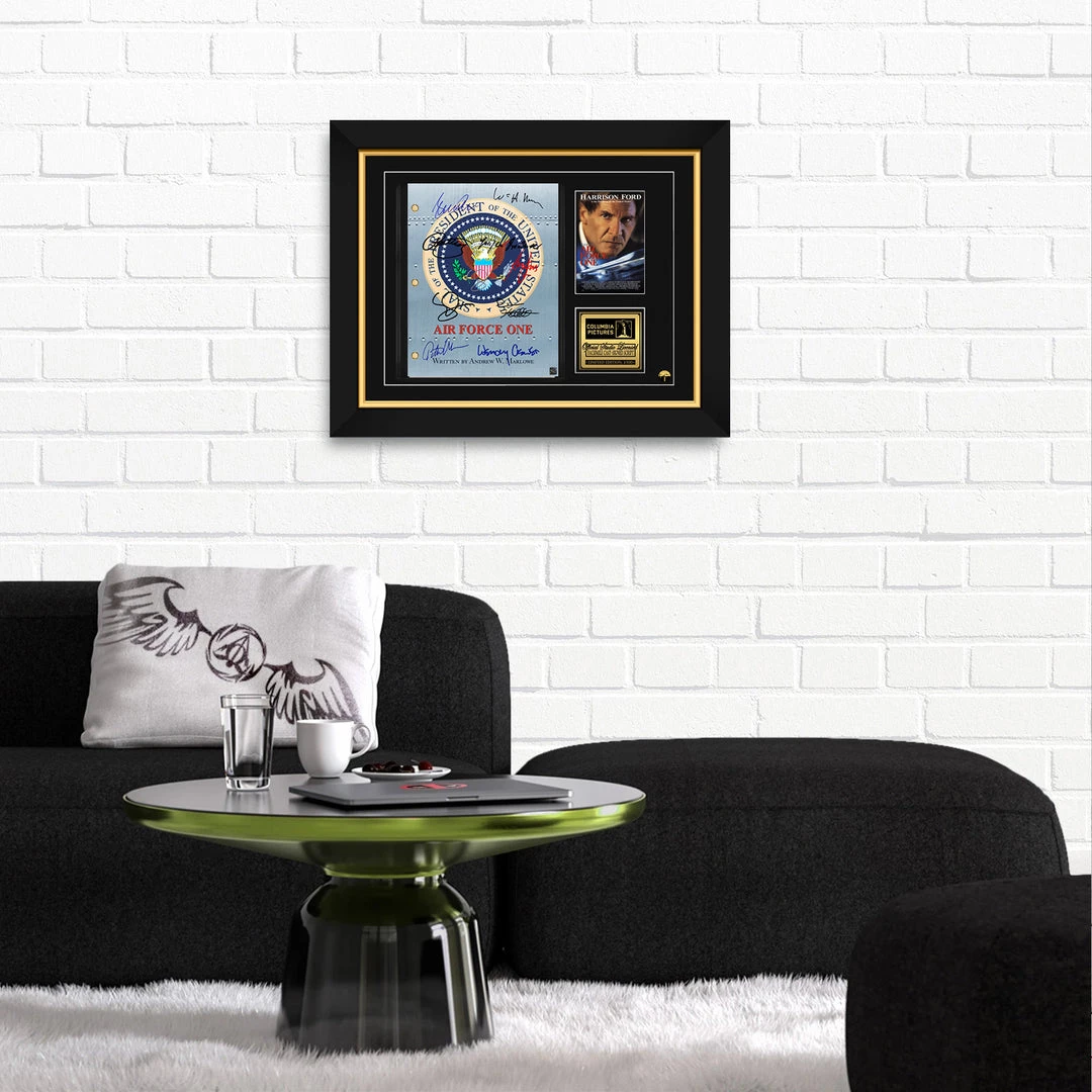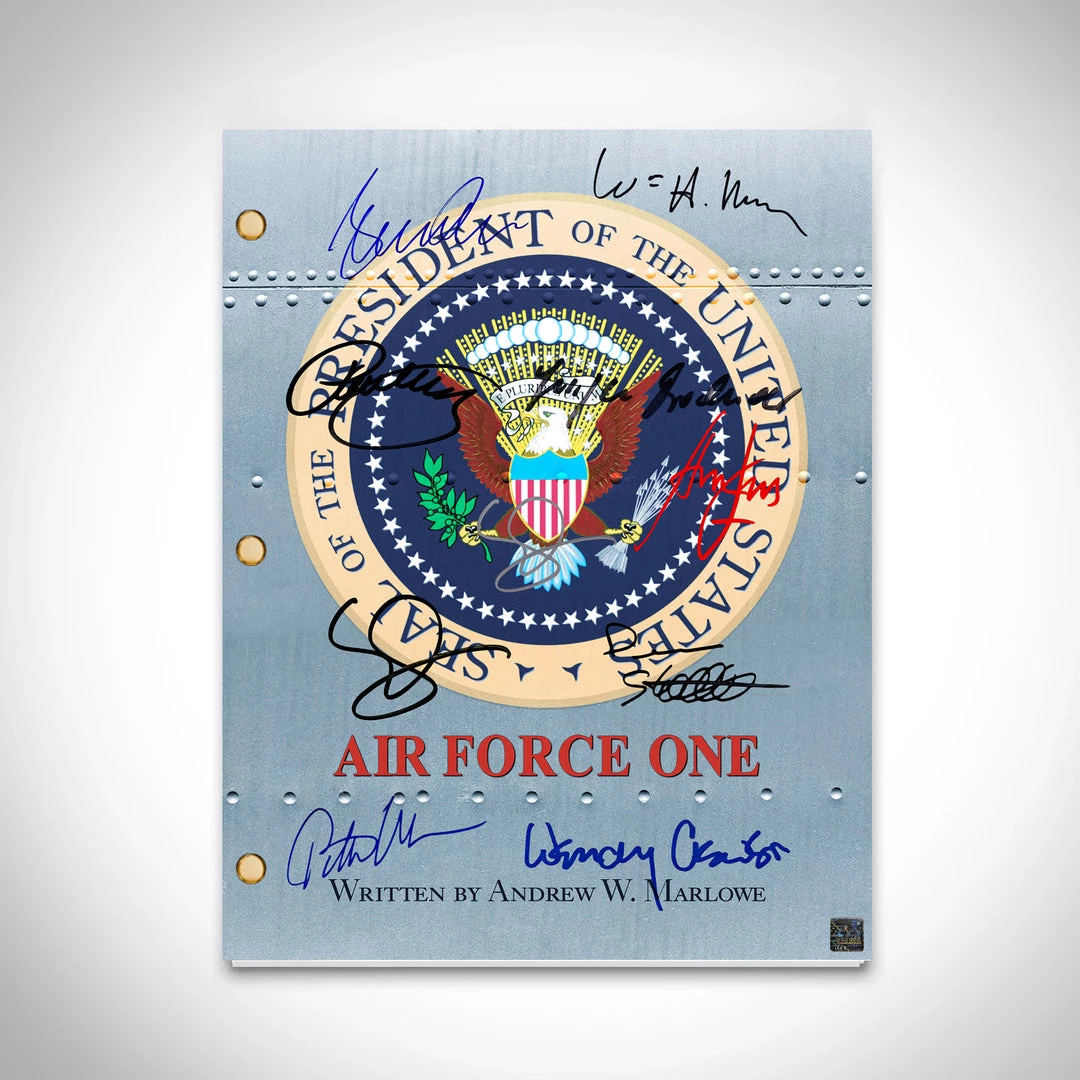 Pay homage to Air Force One , with this Columbia Picture fully licensed facsimile of the official signed movie script, originally signed by actors Harrison Ford, Gary Oldman, Glenn Close, Wendy Crewson, Paul Guilfoyle, William H.Macy, Liesel Mathews, Dean Stockwell, Jürgen Prochnow & Titus Welliver , of which is strictly limited to 100 units Worldwide and has been approved and numbered accordingly.