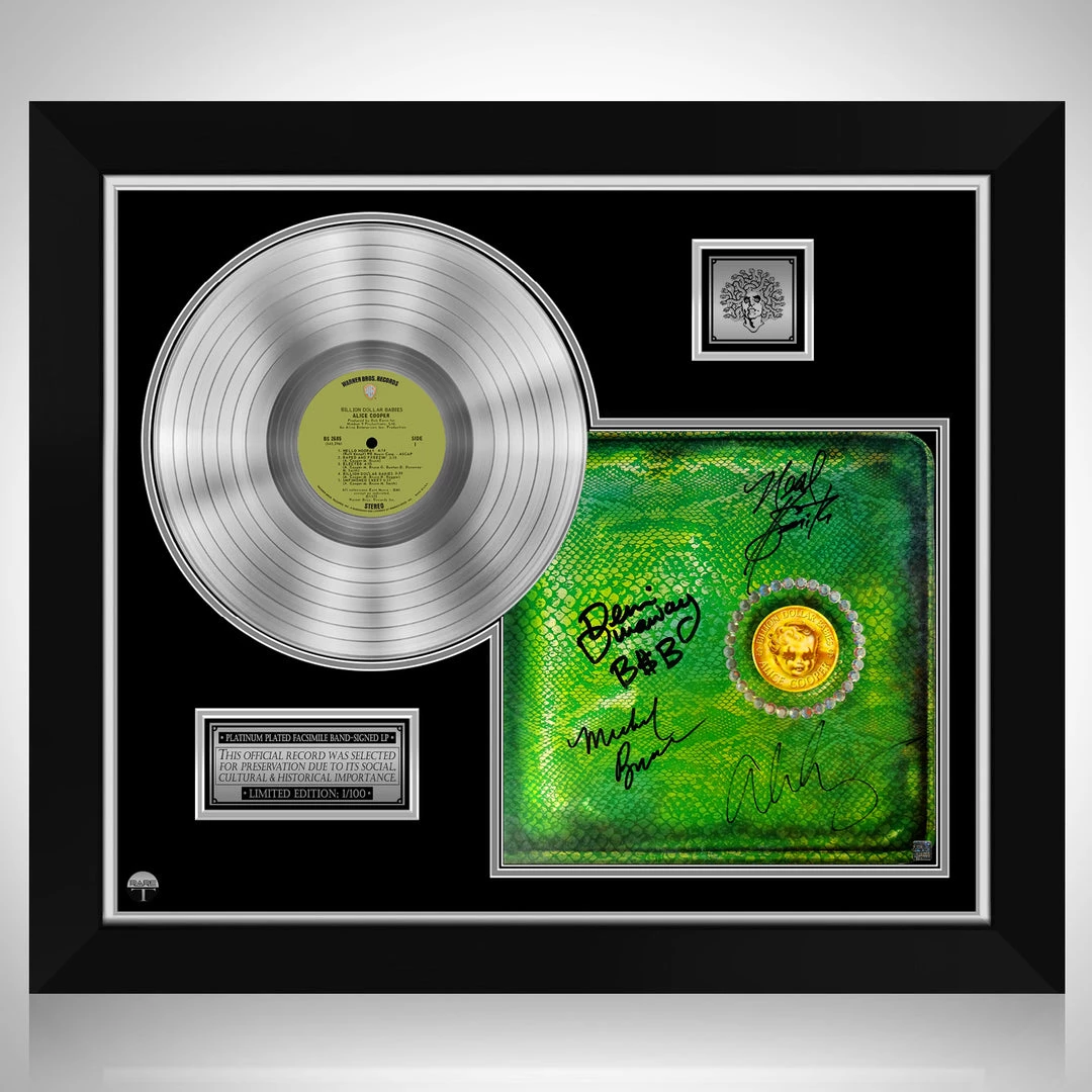 Pay homage to one of the most iconic American rock band of all time Alice Cooper , with this gallery-framed, authentic Warner Bros Records fully licensed facsimile of the official Hand-Signed Platinum Plated LP Record and LP Cover Billion Dollar Babies Originally signed by Alice Cooper, Dennis Dunaway, Michael Bruce & Neal Smith , of which is strictly limited to 100 units Worldwide and has been approved and numbered accordingly.