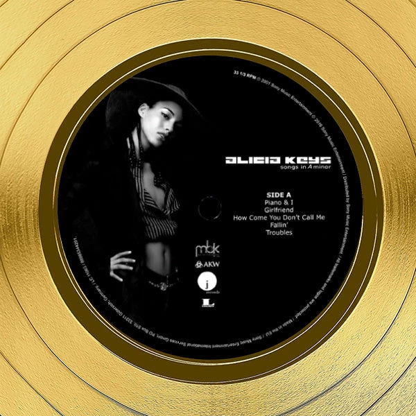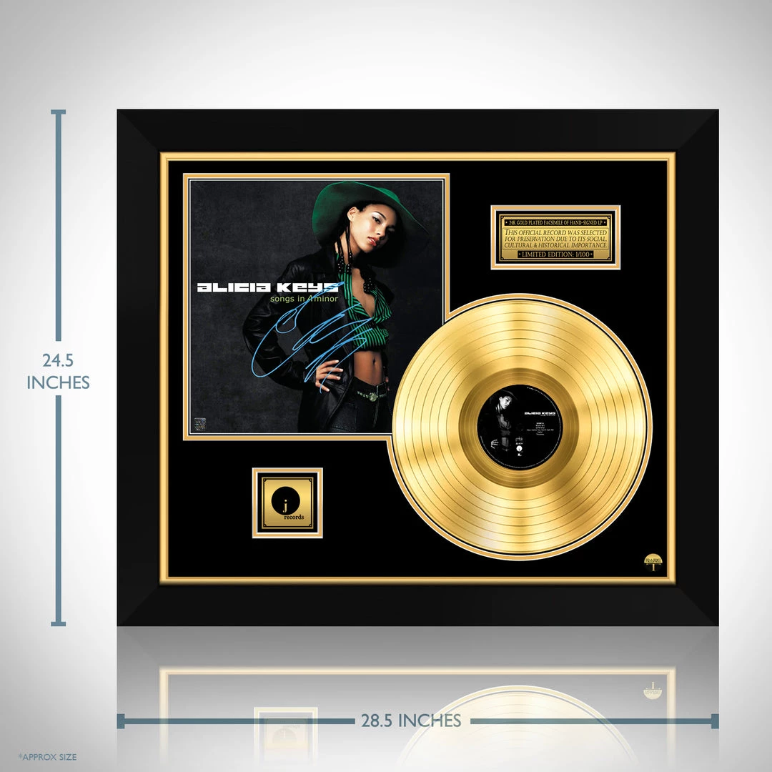 Pay homage to one of the most iconic American singer-songwriter of all time Alicia Keys , with this gallery-framed, authentic J Records fully licensed facsimile of the official Hand-Signed 24K Gold LP Record and LP Cover Songs in a Minor Originally signed by Alicia Keys , of which is strictly limited to 100 units Worldwide and has been approved and numbered accordingly.