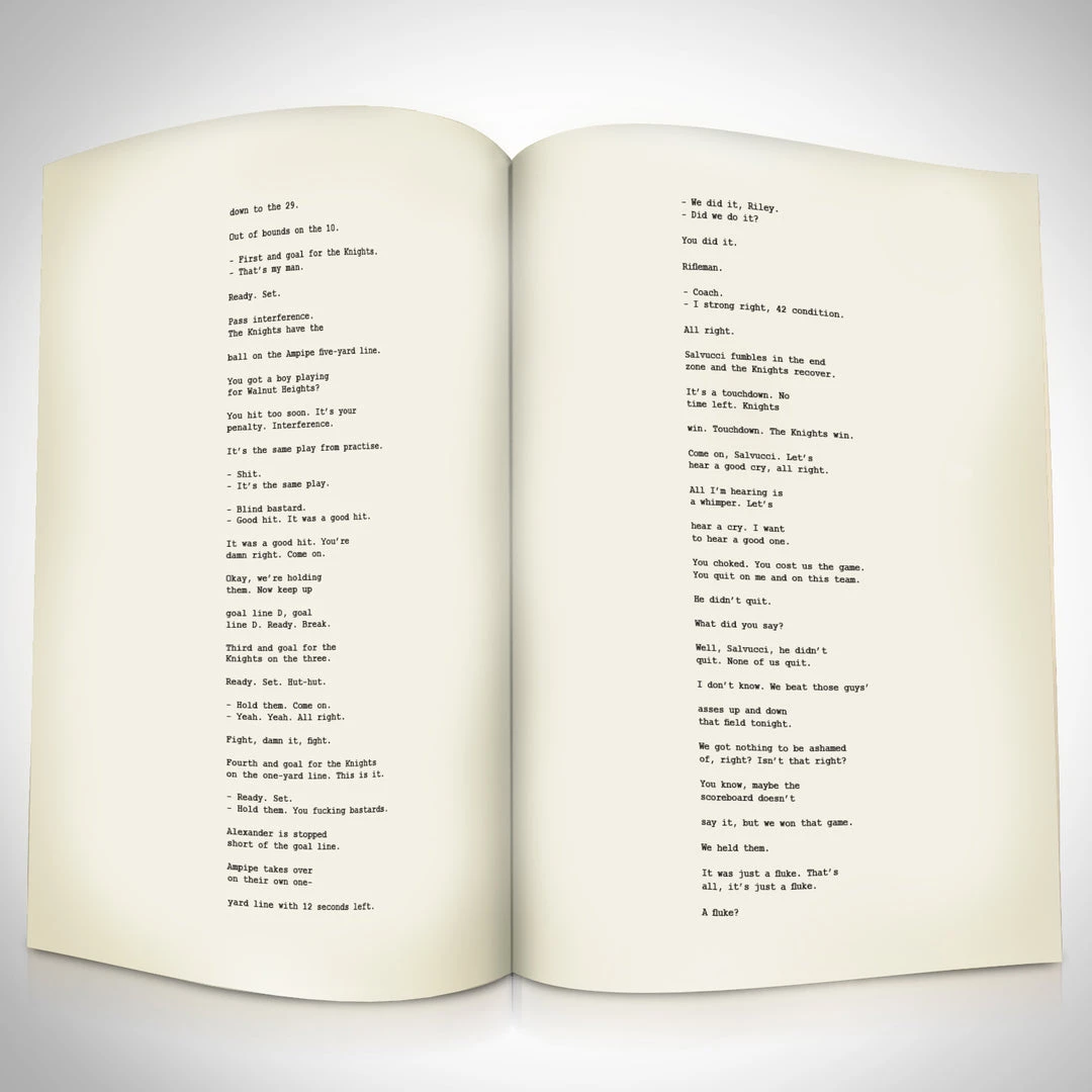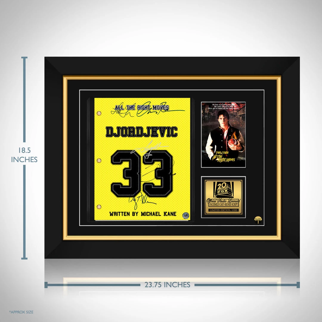 — Collector Grade Proprietary Exclusive VELVET TOUCH water/scratch resistant cover.— Collectible Facsimile of Original Hand-Signed All the right moves movie Script Custom Frame.