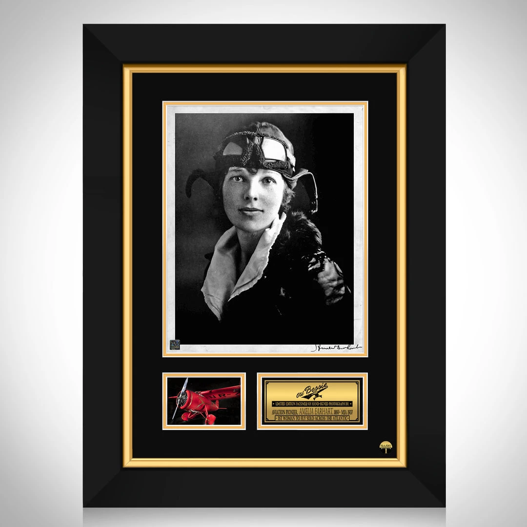 Pay homage to Amelia Earhart,ย with this gallery-framed, officially licensed, limited edition facsimile of the Hand-Signed photo, originally signed by Amelia Earhart, of which is strictly limited to 100 units Worldwide, and has been approved and numbered accordingly.