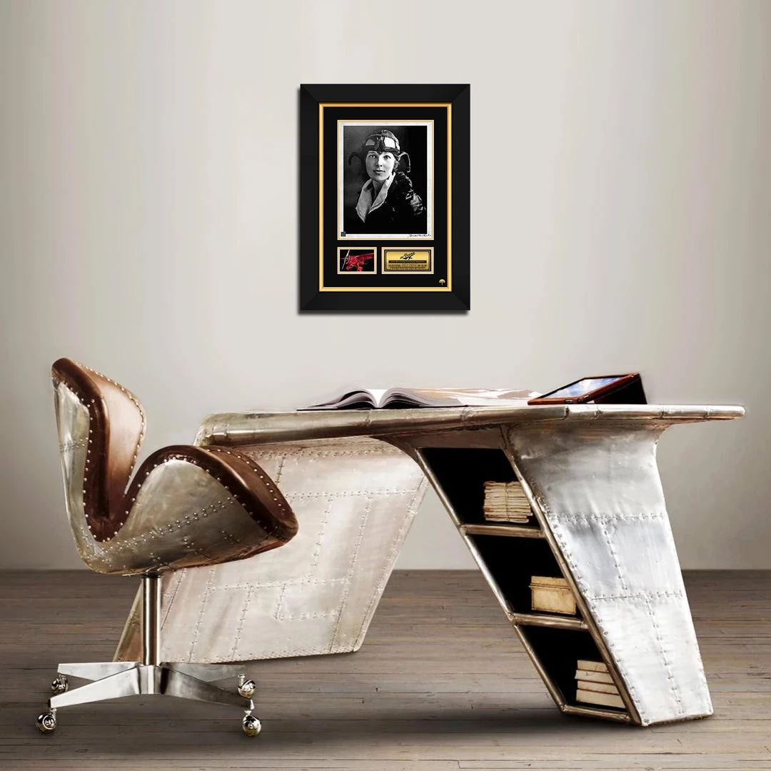 โ Collectibleย Amelia Earhart facsimile photo of original Hand-Signed photo custom frame.