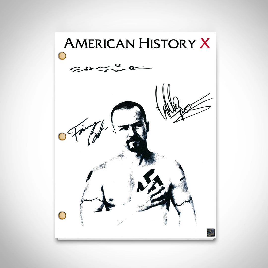 Pay homage to American History X , with this New Line Cinema  fully licensed facsimile of the official signed movie script, originally signed by actors Edward Norton, Fairuza Balk & Edward Furlong , of which is strictly limited to 100 units Worldwide and has been approved and numbered accordingly.