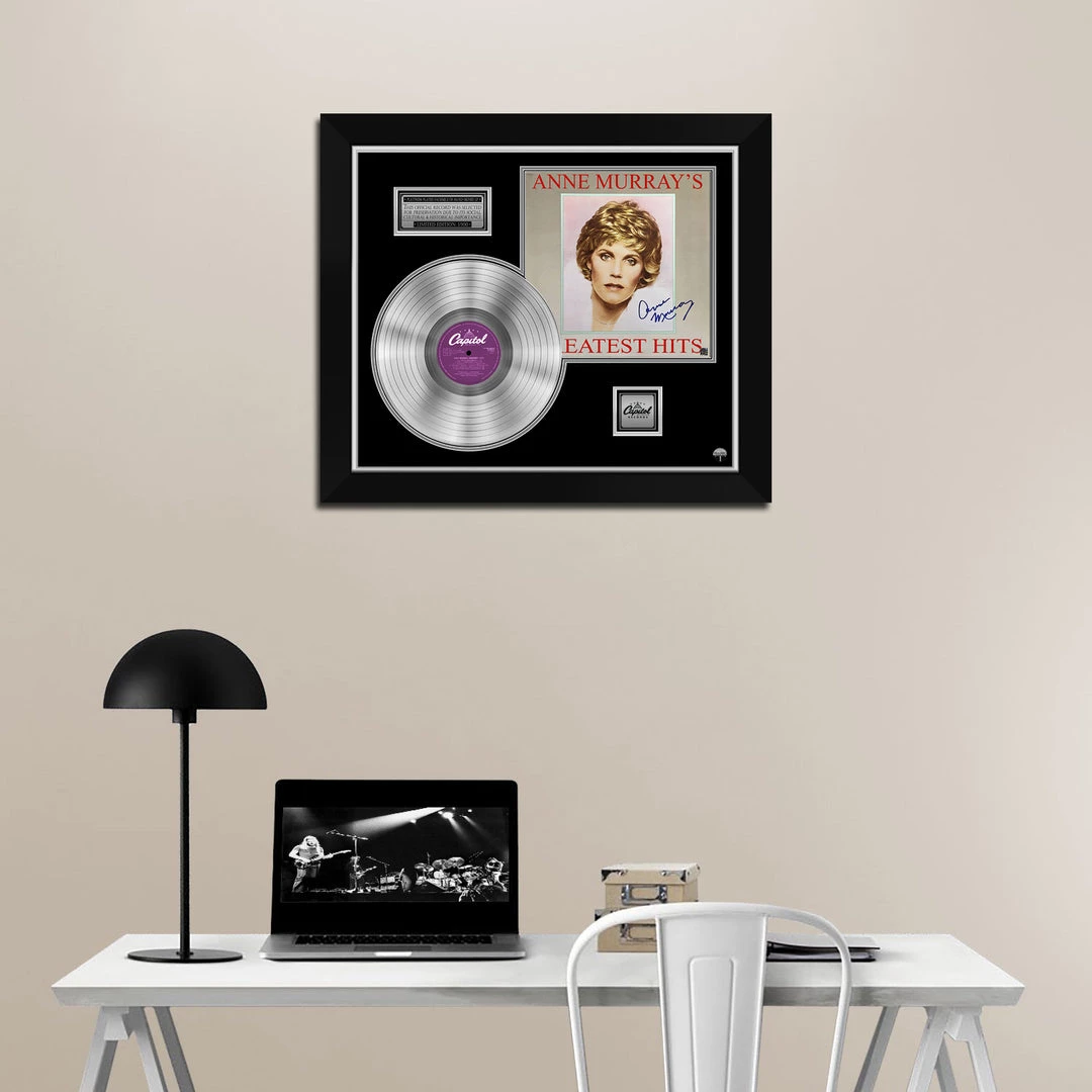 Pay homage to one of the most iconic Canadian singer. of all time Anne Murray , with this gallery-framed, authentic Capitol Records fully licensed facsimile of the official Hand-Signed Platinum Plated LP Record and LP Cover Murray’s Greatest Hits Originally signed by Anne Murray , of which is strictly limited to 100 units Worldwide and has been approved and numbered accordingly.