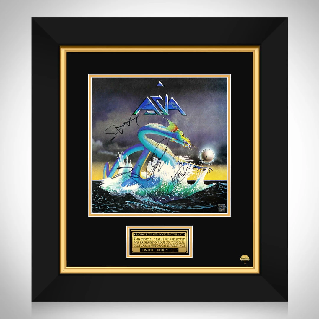 Pay homage to one of the most iconic English rock supergroup of all time, Asia , with this gallery-framed, officially licensed, limited edition facsimile of the Hand-Signed Asia LP Cover originally signed by John Wetton, Geoff Downes, Steve, Howe & Carl Palmer , of which is strictly limited to 100 units Worldwide, and has been approved and numbered accordingly.