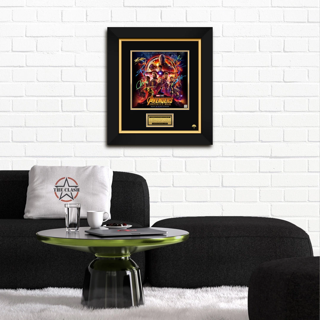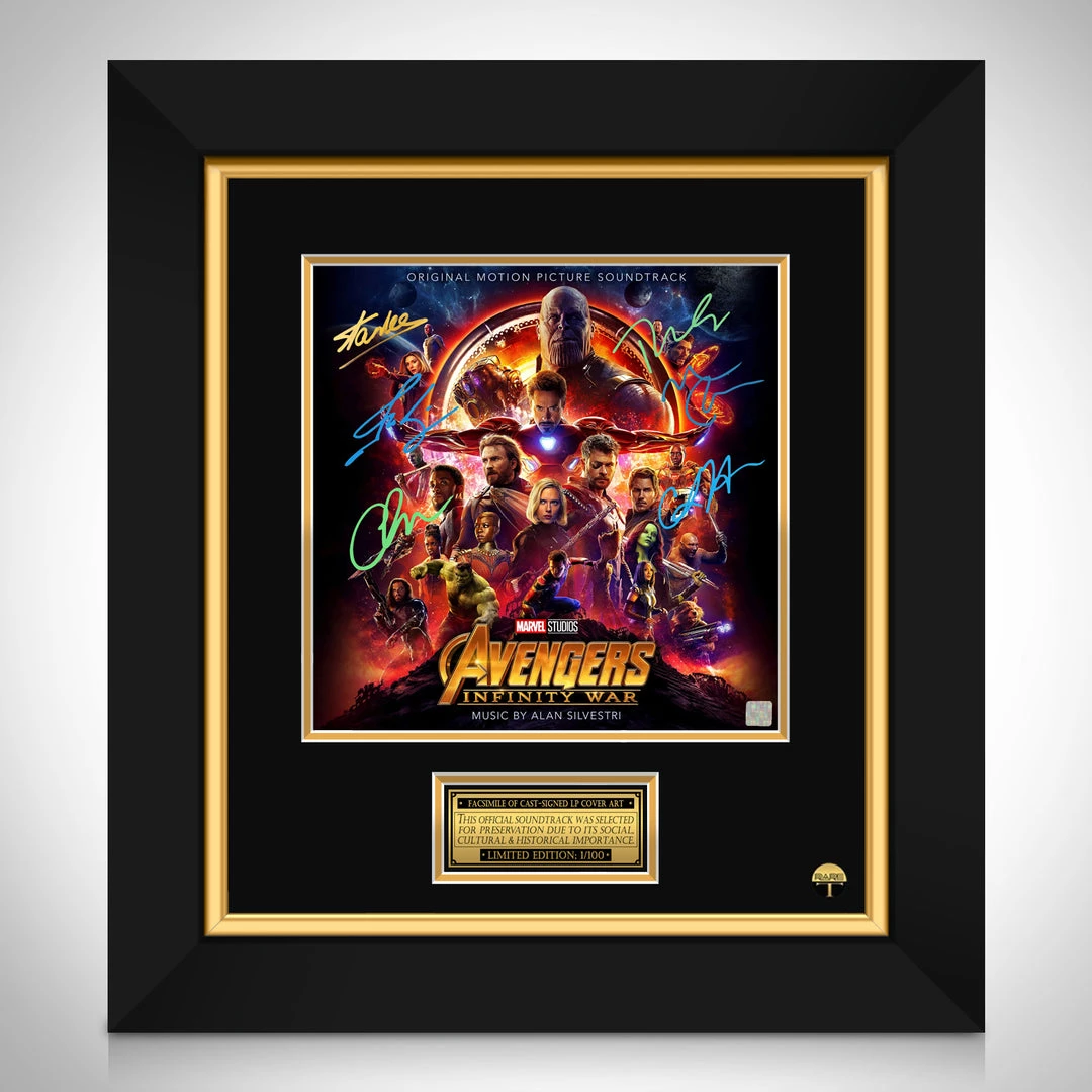 Pay homage to one of the most iconic Marvel films of all time, Avengers Infinity War, with this gallery-framed, officially licensed, limited edition facsimile of the Hand-Signed Avengers Infinity War Motion Picture Soundtrack LP Cover, originally signed by legendary actors Chris Hemsworth, Robert Downey Jr., Chris Evans , Mark Ruffalo, Josh Brolin and the late, great Stan Lee, of which is strictly limited to 100 units Worldwide, and has been approved and numbered accordingly.