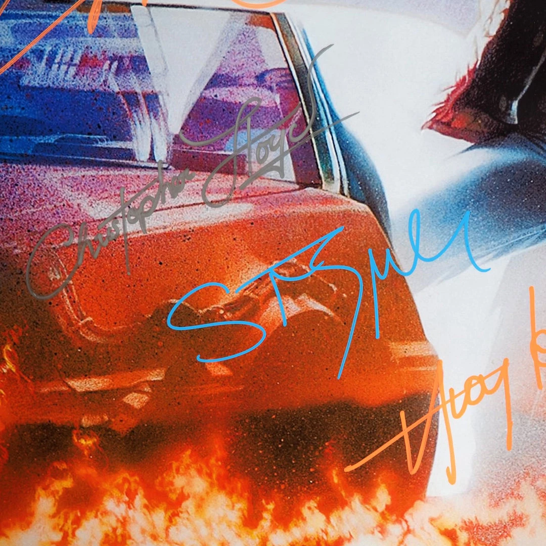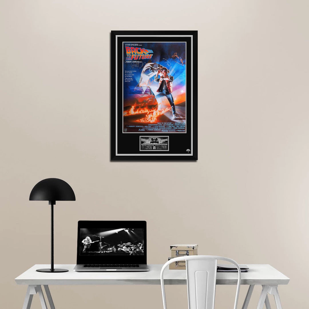 Pay homage to Back To The Future with this gallery-framed, officially licensed, limited edition facsimile of hand-signed mini poster, originally signed by  Michael J. Fox, Christopher Lloyd, Thomas F. Wilson, Huey Lewis, James Tolkan, as well as legendary director Robert Zemeckis & Steven Spielberg., of which is strictly limited to 100 units Worldwide, and has been approved and numbered accordingly.