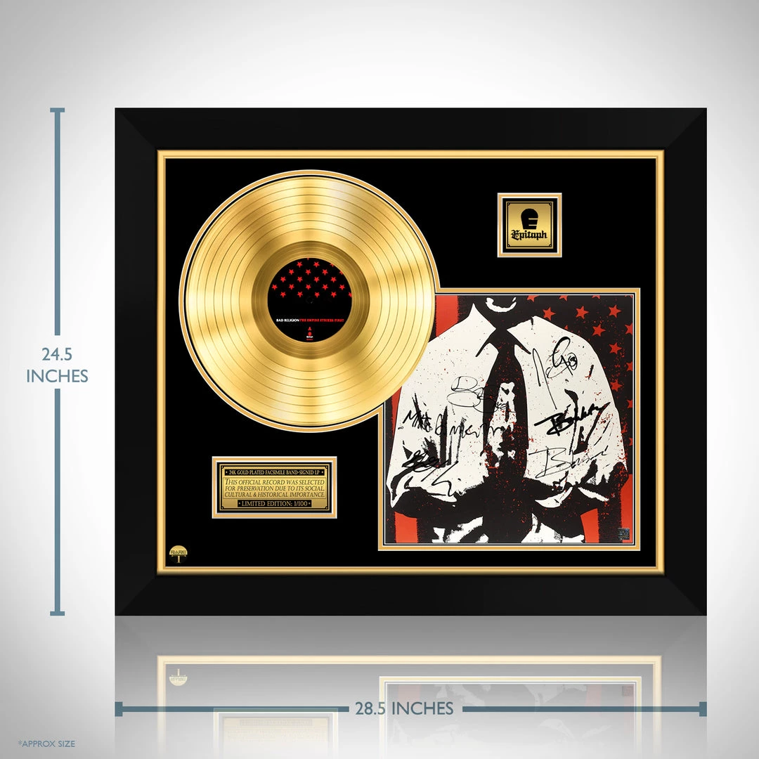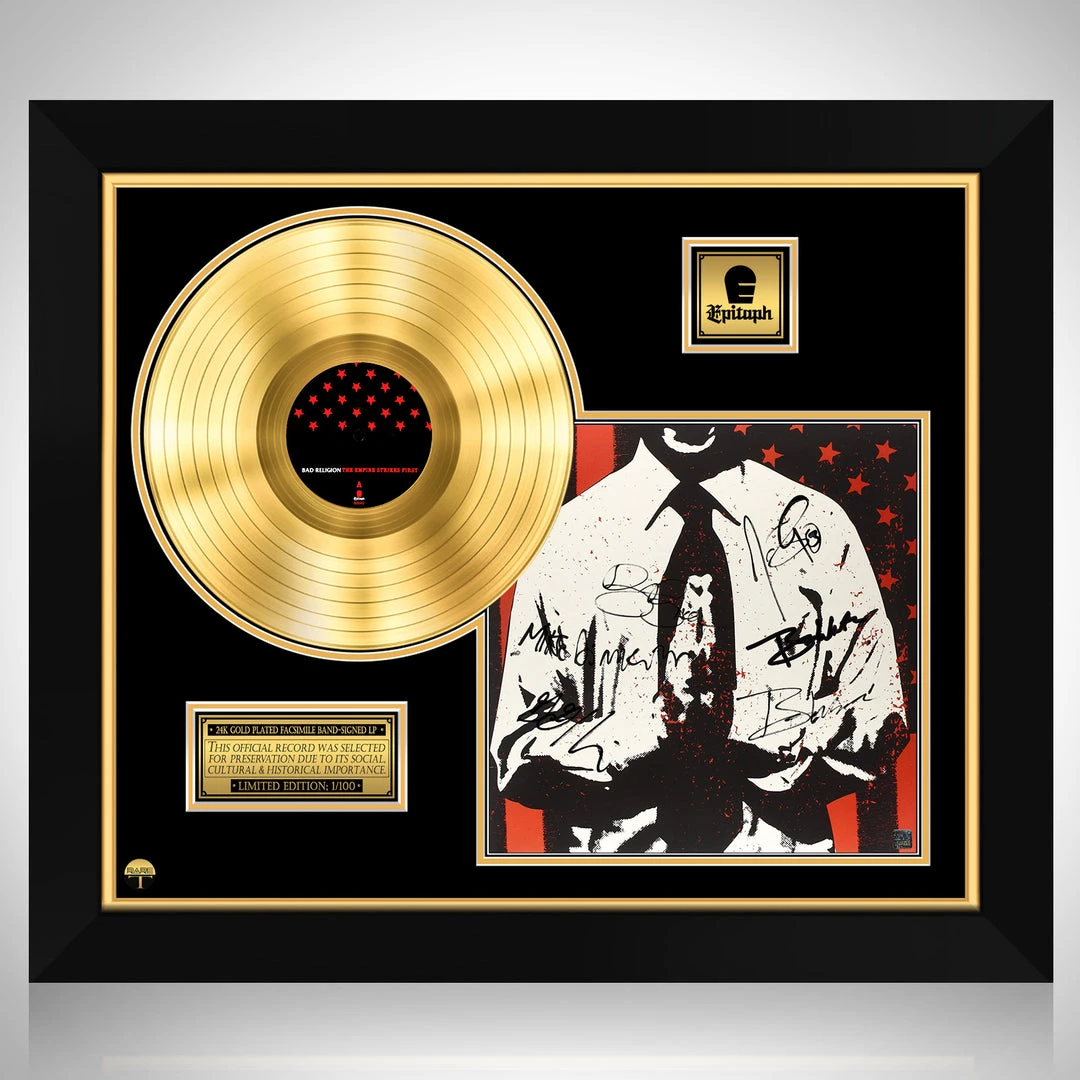 Pay homage to one of the most iconic American punk rock band of all time Bad Religion , with this gallery-framed, authentic Epitaph Records fully licensed facsimile of the official Hand-Signed 24K Gold LP Record and LP Cover The Empire Strikes First Originally signed by Greg Graffin, Greg Hetson, Brian Baker, Brett Gurewitz, Brooks Wackerman & Jay Bentley , of which is strictly limited to 100 units Worldwide and has been approved and numbered accordingly.
