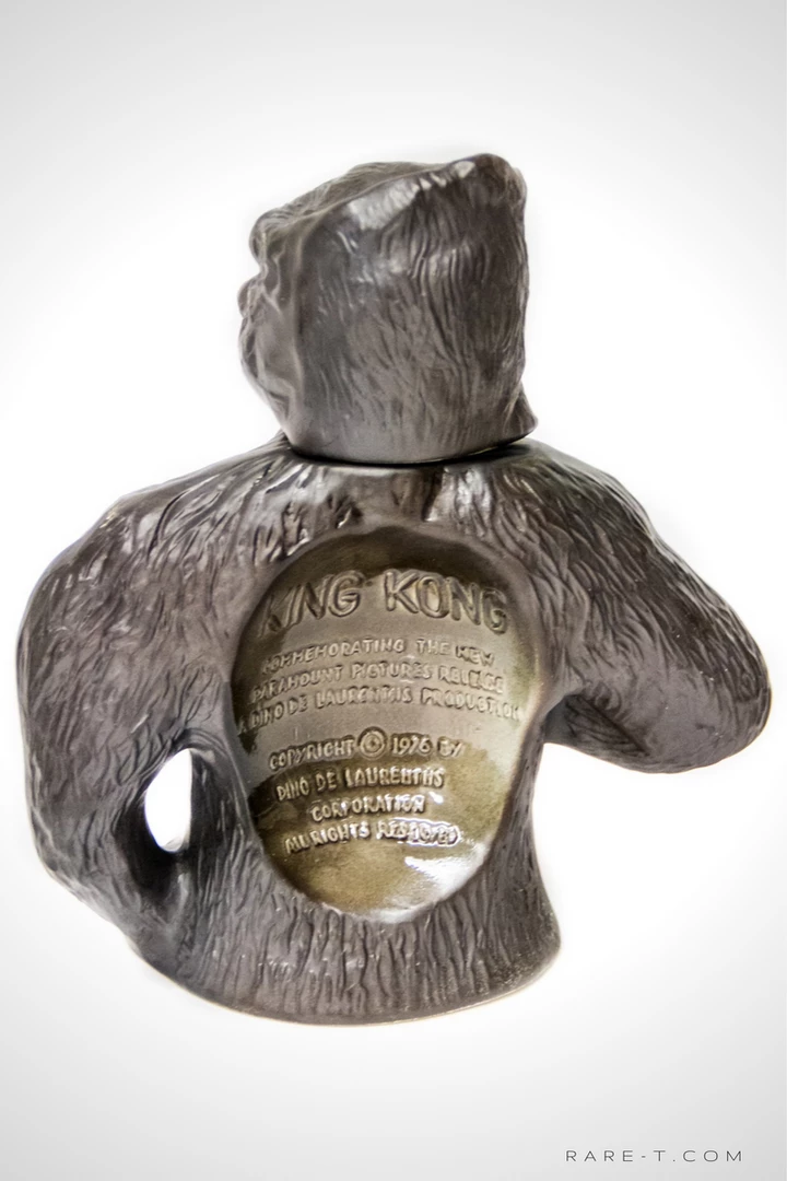 This original 1976 vintage Collectors Series created by James B. Beam. This ‘KING KONG-JIM BEAM’ genuine Regal China 100 months old Straight Bourbon Whiskey decanter was sculpted and painted by hand, to commemorate the new Paramount Pictures release KING KONG – A Dino De Laurentis Production. He’s almost 10 inches tall. Amazing condition given that these, usually, just haven’t survived. NO cork – it’s a twist cap, which is a rarity in itself. Impressive movie history deco… no chips or cracks. Perfectly aged patina. Just the way we like’em…