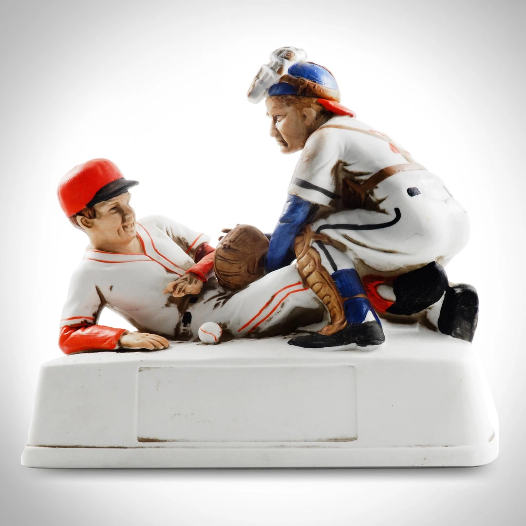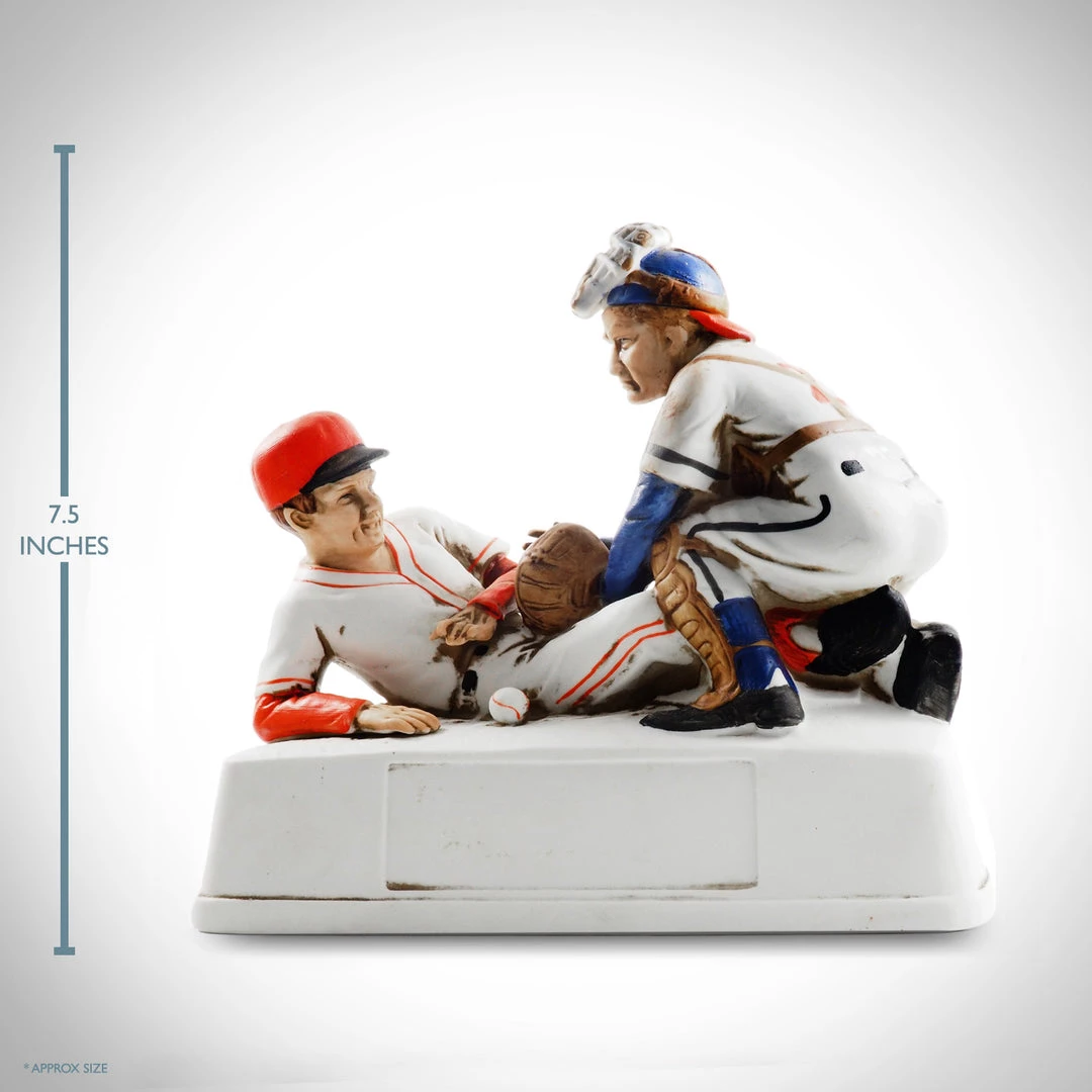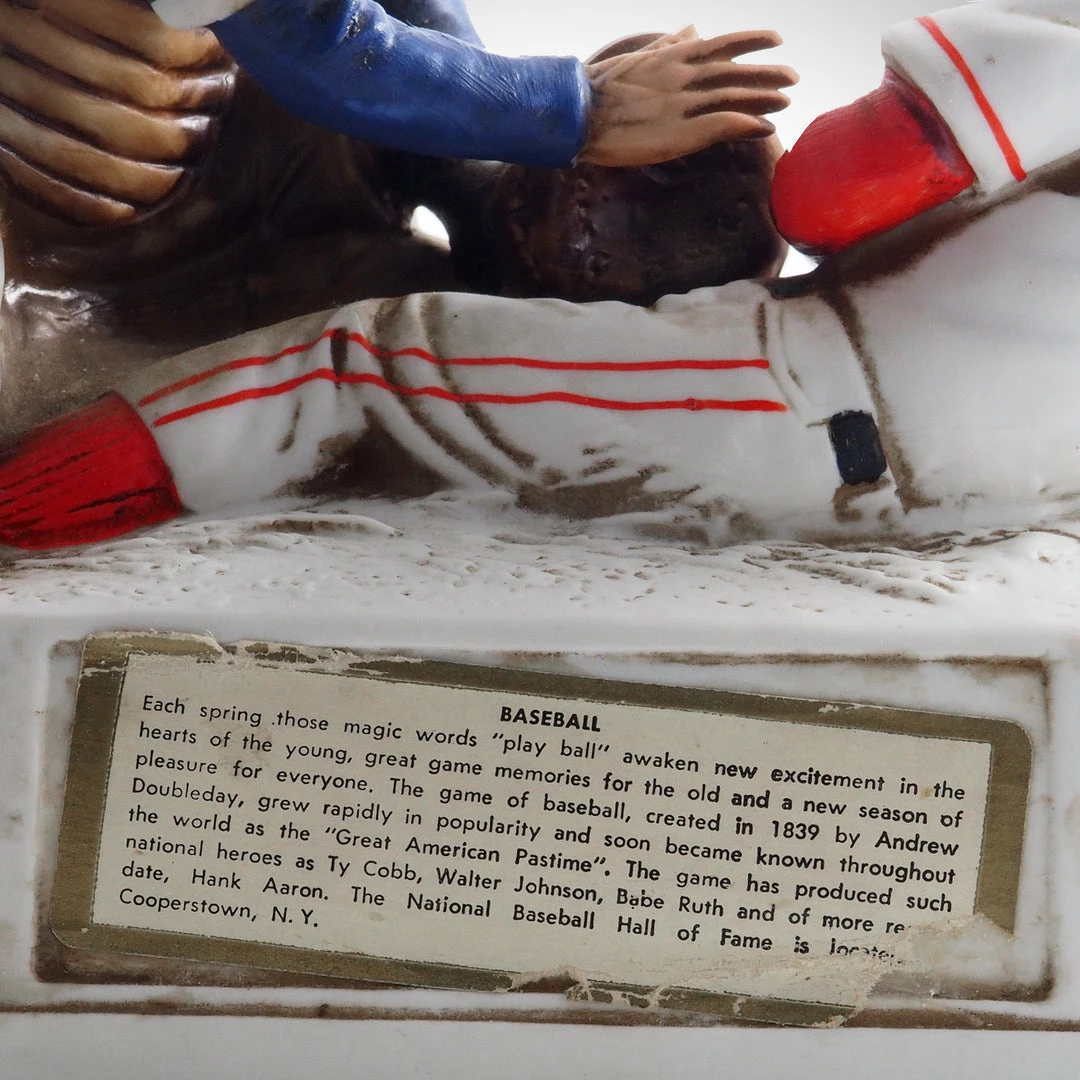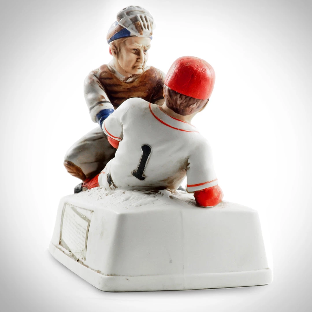 This Limited Edition sculptured porcelain Decanter is an elaborate hand painted action scene depicting a runner sliding safely in under the catcher’s tag.