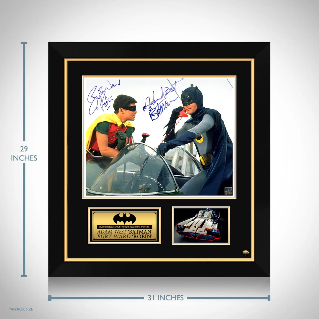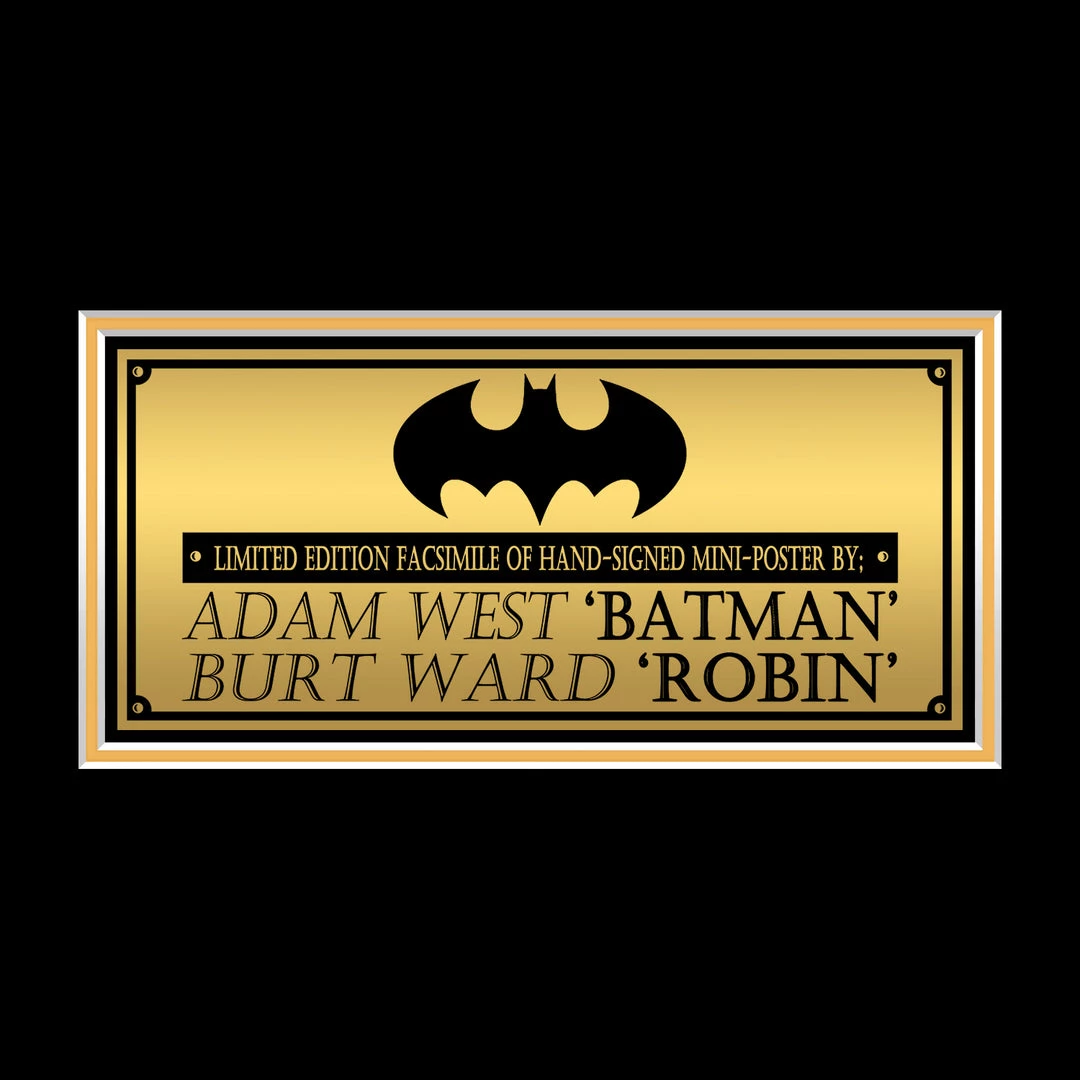 Pay homage to Batman & Robin, with this gallery-framed, officially licensed, limited edition facsimile of hand-signed mini poster, originally signed by Adam West & Burt Ward, of which is strictly limited to 100 units Worldwide, and has been approved and numbered accordingly.