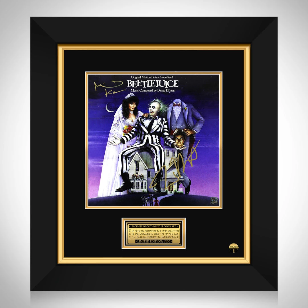 Pay homage to one of the best Fantasy/Comedy/Horror films of all time, Beetlejuice, with this gallery-framed, officially licensed, limited edition facsimile of the Hand-Signed Beetlejuice Motion Picture Soundtrack LP Cover, originally signed by actor Michael Keaton and legendary Animator, Artist, Filmmaker & Writer Tim Burton, of which is strictly limited to 100 units Worldwide, and has been approved and numbered accordingly.